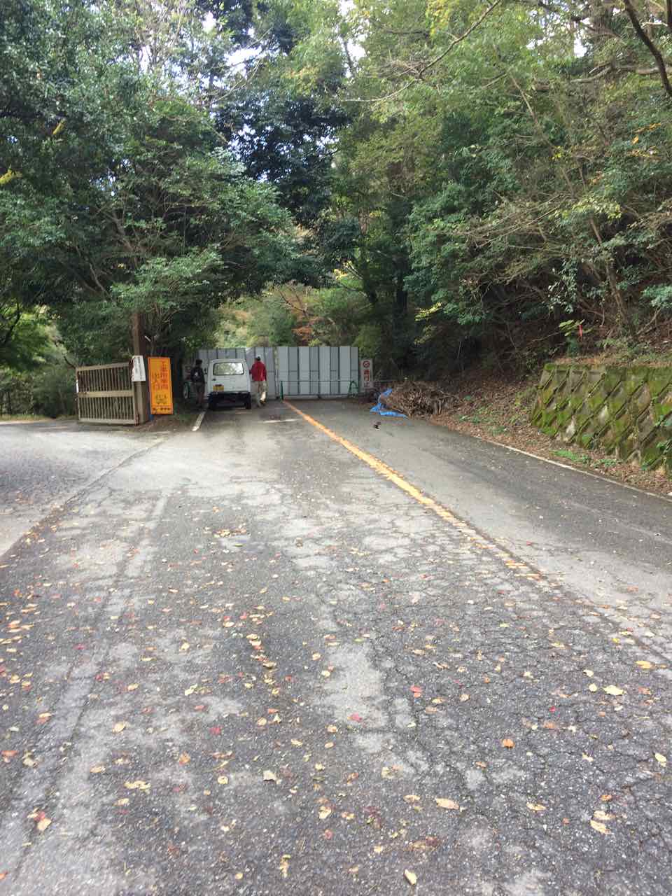 道路が完全封鎖されていた。さすがにこれは通れない。 (><) オートバイでツーリングに来ていた集団も、ドライブに来ていたカップルもここで U ターン。もう少しで六甲越えなので、諦めきれない私は迂回路を求めて、先ほどの通行止の看板まで戻る。だがしかし…。