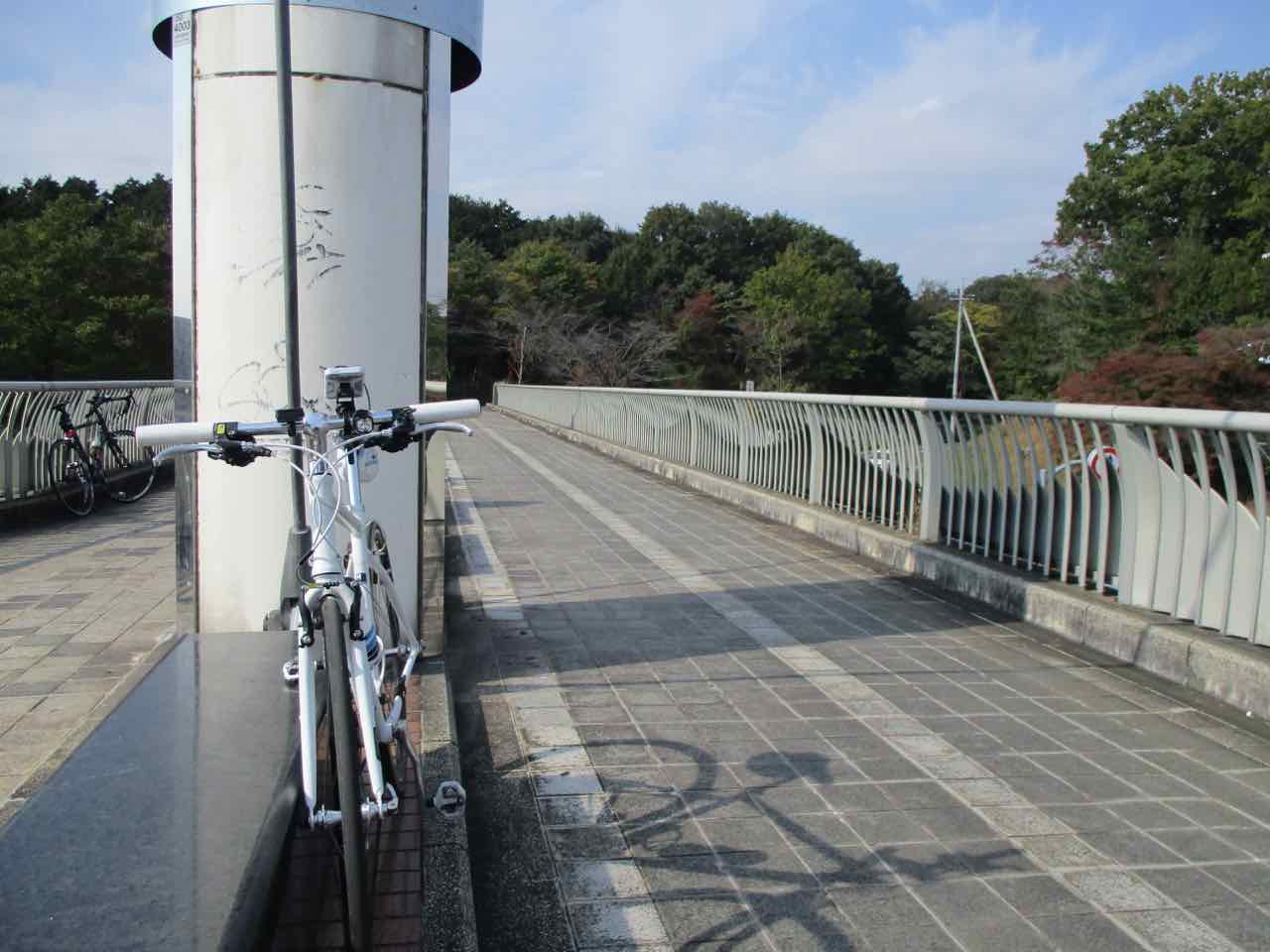 自転車道は、ところどころ立体交差になっていて、道路の横断や信号に遭遇することなく、ノンストップで多摩湖を一周できるようになっている。写真は村山上ダムの北川付近のオーバーパスより (多分…)。