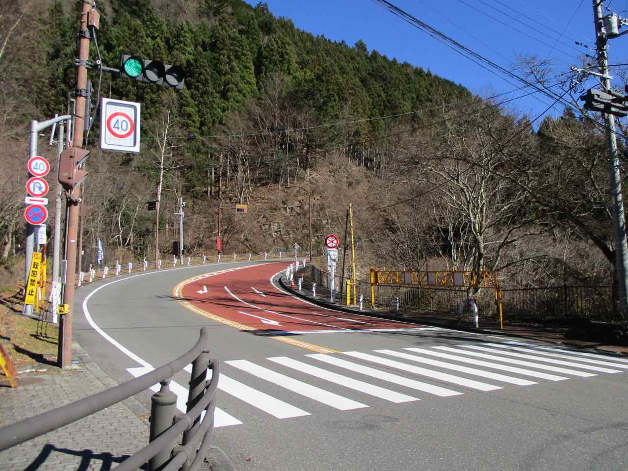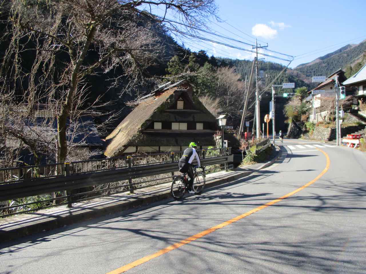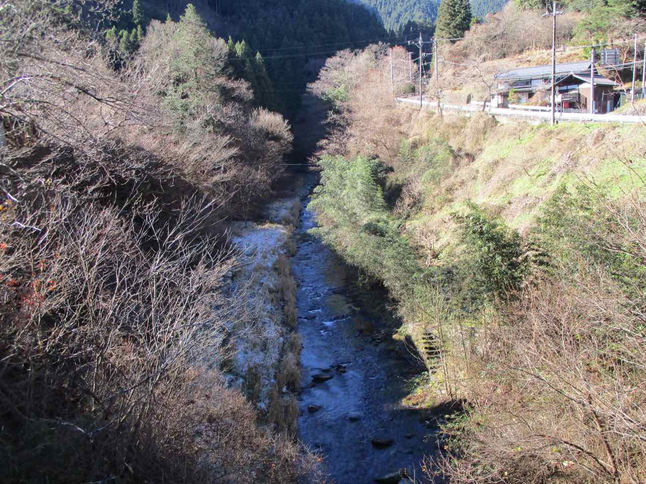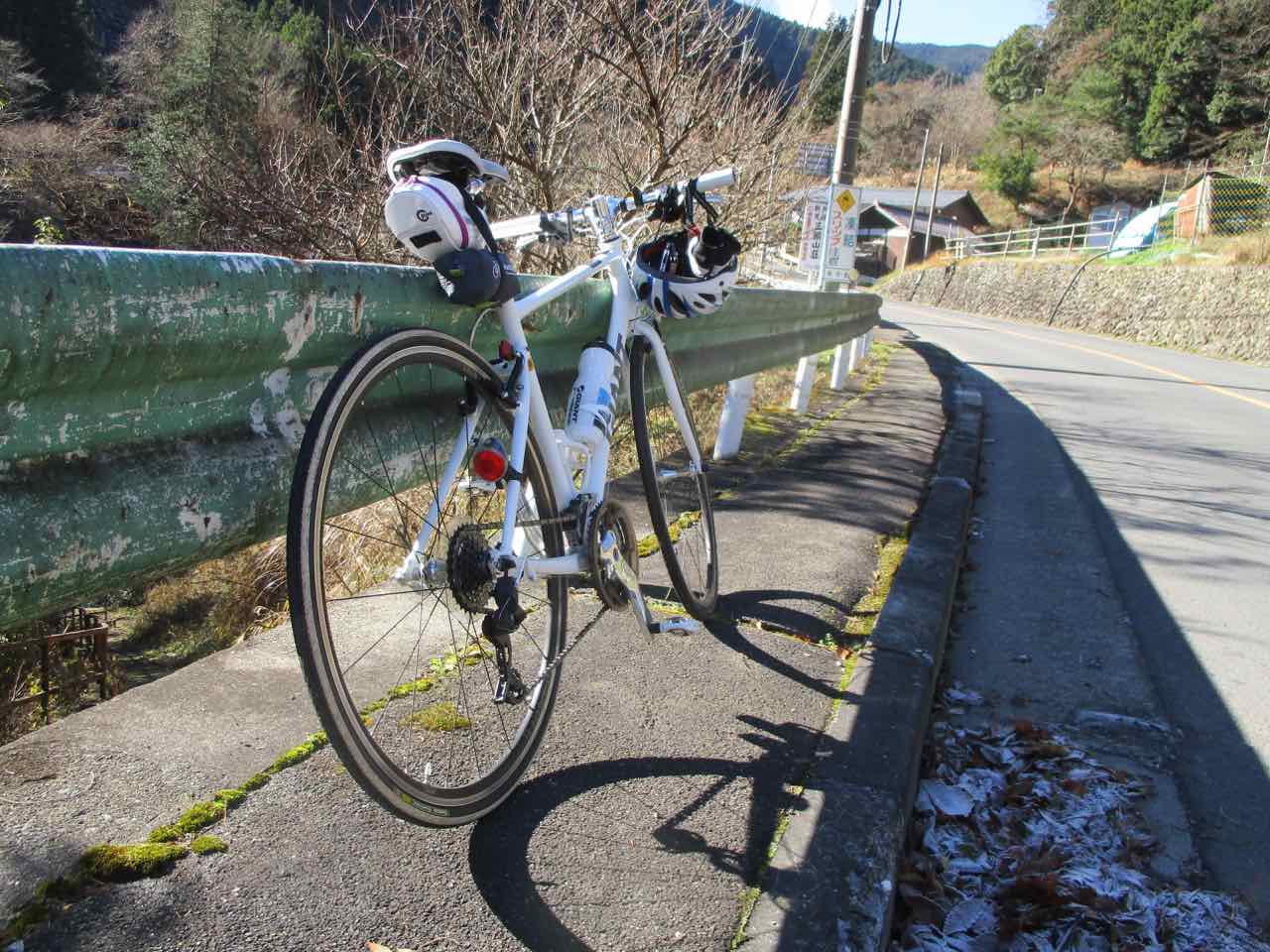 数馬の公衆トイレで小休止。寒いからね。 ^^; 前回、脚がつって休んだ場所は少し前に過ぎた。前よりは成長してる!! …とはいえ、ハムストリングがピクピクと痙攣気味で、脚に力が入らない脱力感も感じる。ハンガーノックってこともないだろうけど、念のため、スポーツ羊羹で糖分を補給する。