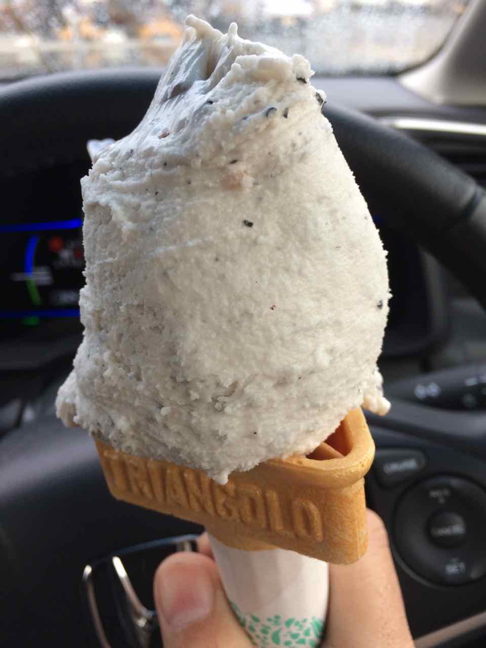 外気温は 2 °Cだが、せっかく車で来たので美山牛乳ジェラートを食べることにした。ロードバイクで来てたら、さすがにこれは食べられなかっただろう。 ^^;