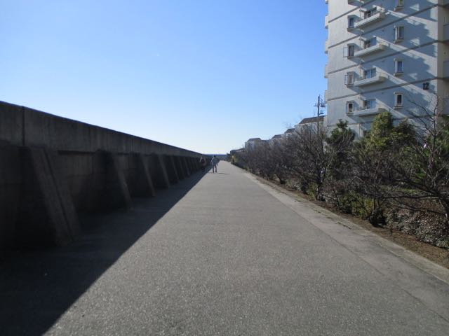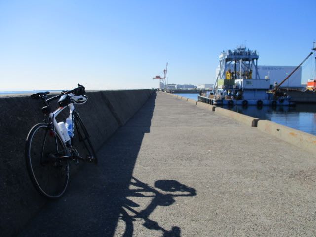 海が近づくと、サイクリングロードはなくなるが、堤防沿いを走れる。