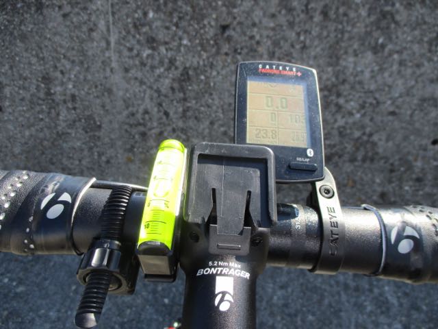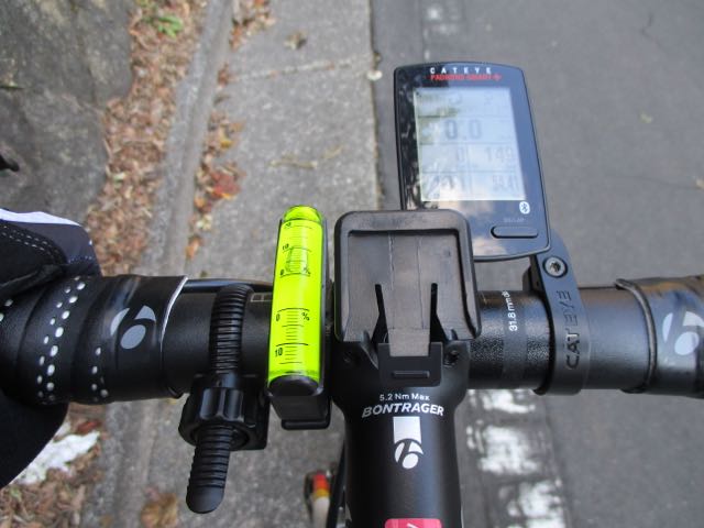 ここで小物紹介。ステムの左側に付いているのは、勾配計だ。