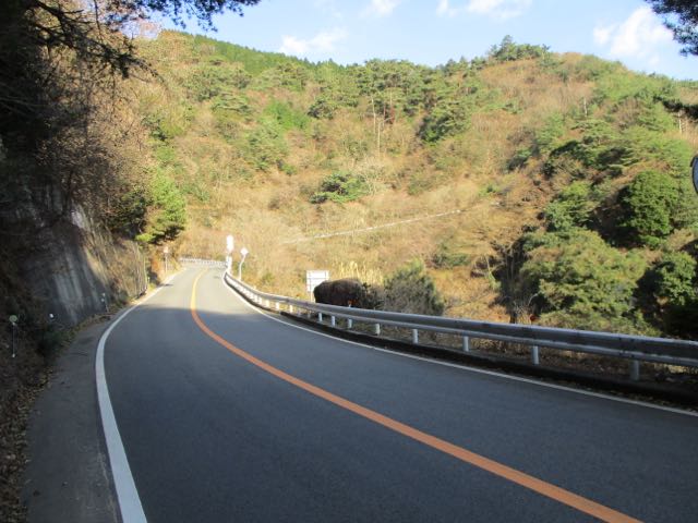 注意いただいた意味を痛感する。凍結までは行かないまでも、山頂から宝塚までは山の北側になるらしく、あまり日が当たらないようだ。路面は濡れたままになっていて、ものすごく寒い。下り坂だというのに、ブレーキを握る手がしびれて、感覚が頼りない。細かいブレーキ操作はとてもできず、なかなかの急坂でブレーキを握ったまま緩めることもできず、 20Km/h ぐらいで下り続ける。