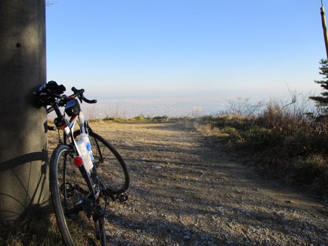 頂上まではまだ 3Km ほどあったと思う。脚は重いが、もう、引き返すよりも頂上越えした方が早く帰れるので、続いてペダルを回す。初めての表六甲ドライブウェイだが、頂上付近で知ってる道に出ることができた。標識に 宝塚 の文字が現れたあたりから、アップ & ダウンを繰り返すようになり、少し楽に走れるようになった。 iPhone の地図を確認すると、いつの間にか六甲山頂は過ぎていて、下り基調になった頃に、絶景ポイントに遭遇した。