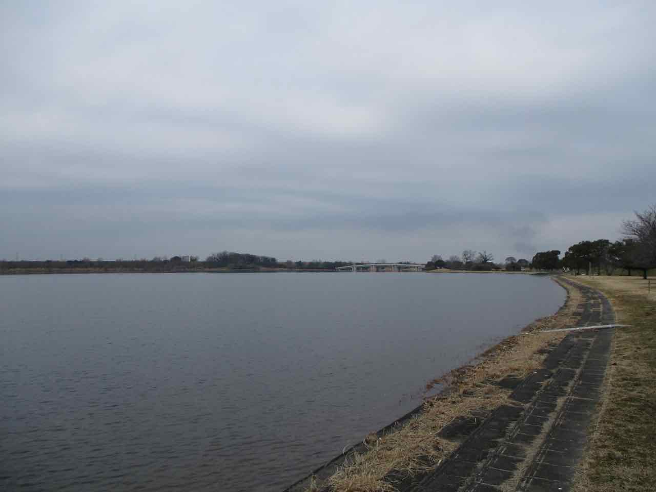 待ち合わせは彩湖自然学習センター。その付近から彩湖を撮影してみた。あいにくの曇天だけど、なかなかの景観。 ^^