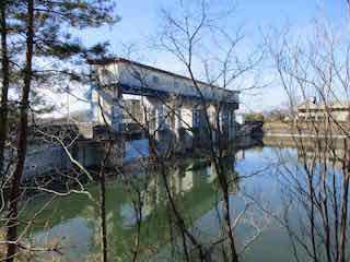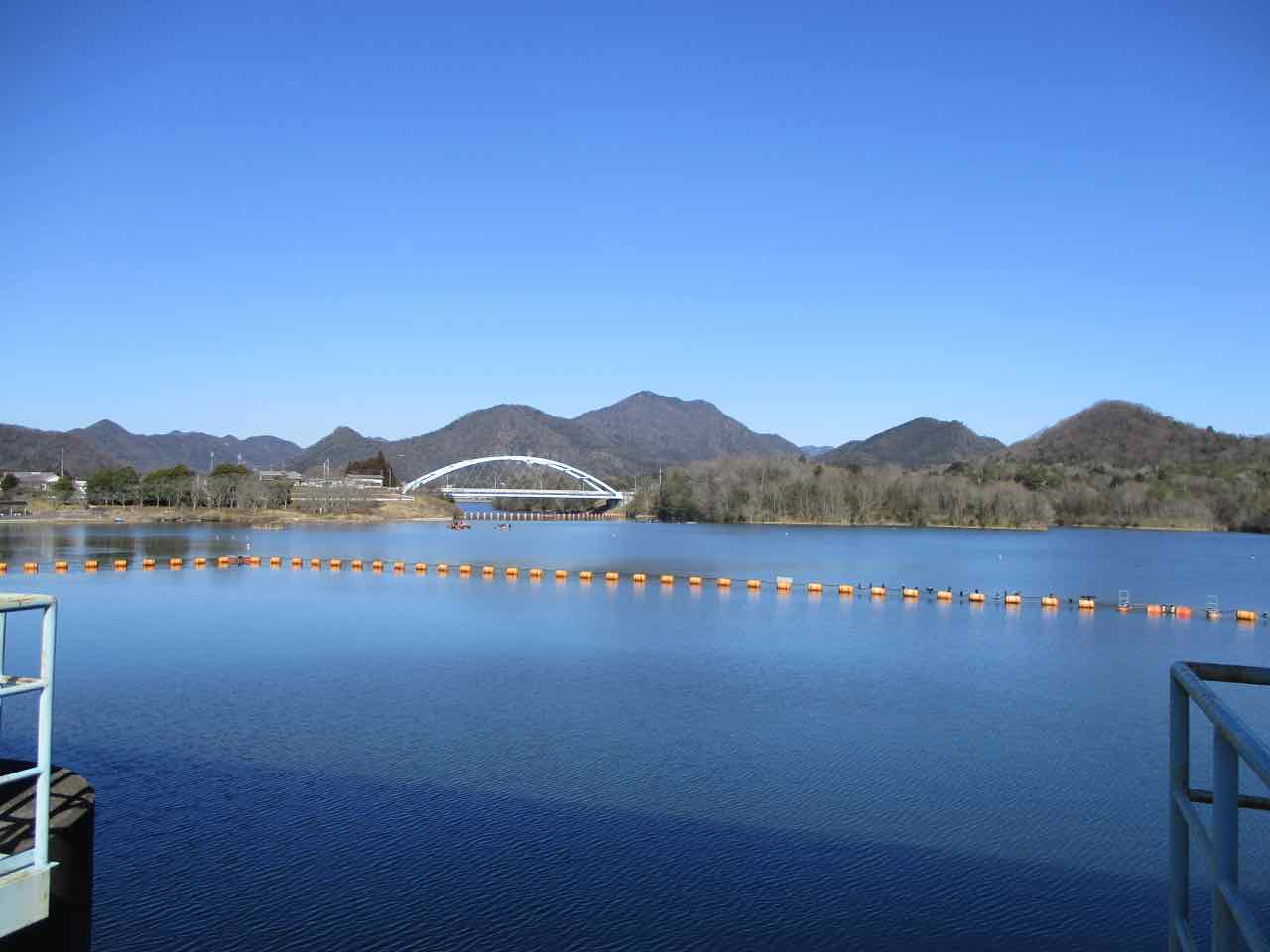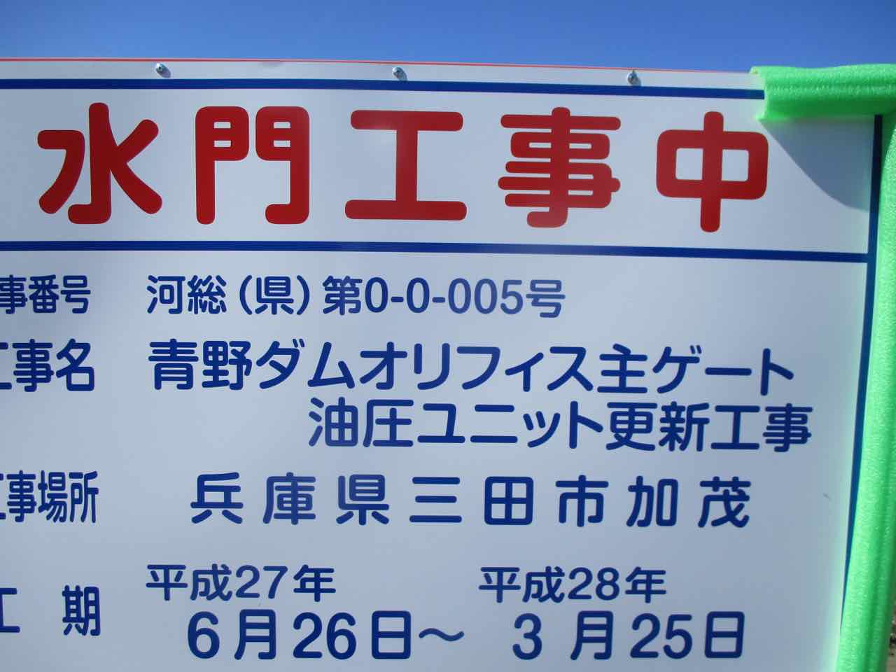 軽く補給を済ませて、青野ダムのある千丈寺湖の東端に到着すると、水門工事中の看板を発見した。