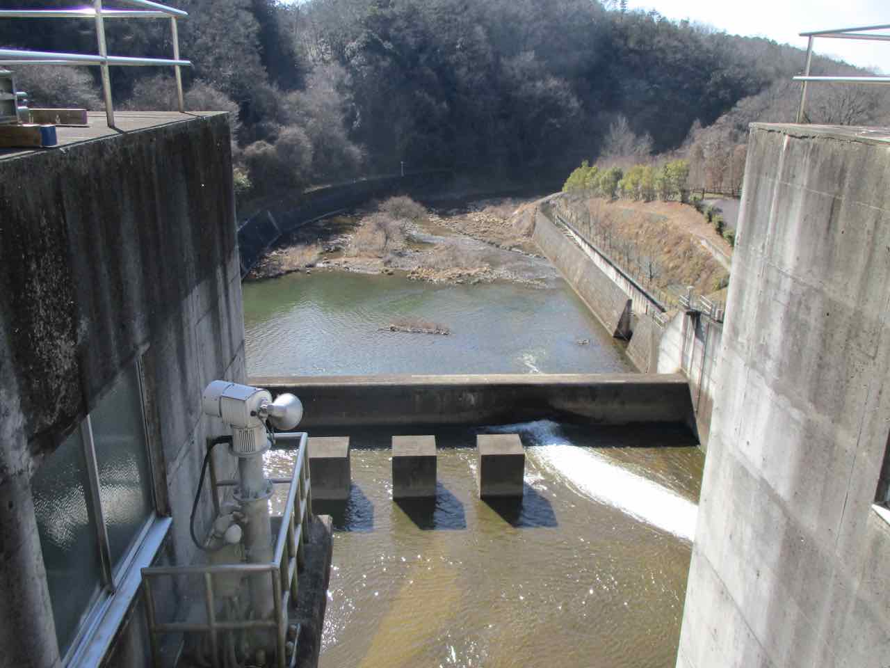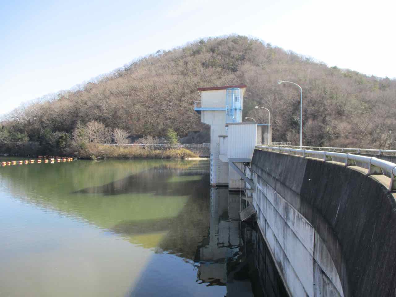 堤体の上流 (千丈寺湖) 側と、下流側。