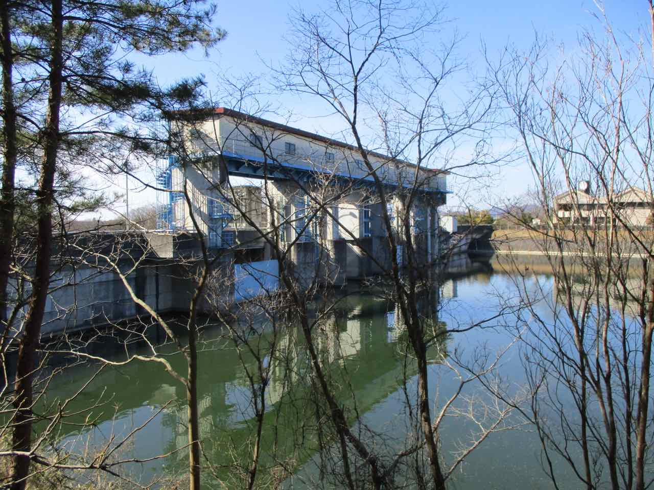 そして堤体。青野ダムは、下流側が関係者以外立ち入り禁止になっていて、堤体の壁を撮影することはできなかった。残念…。