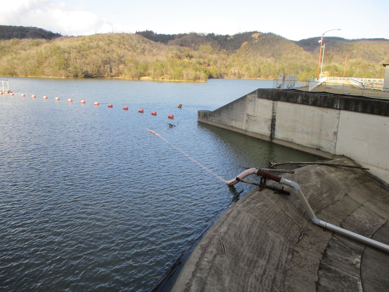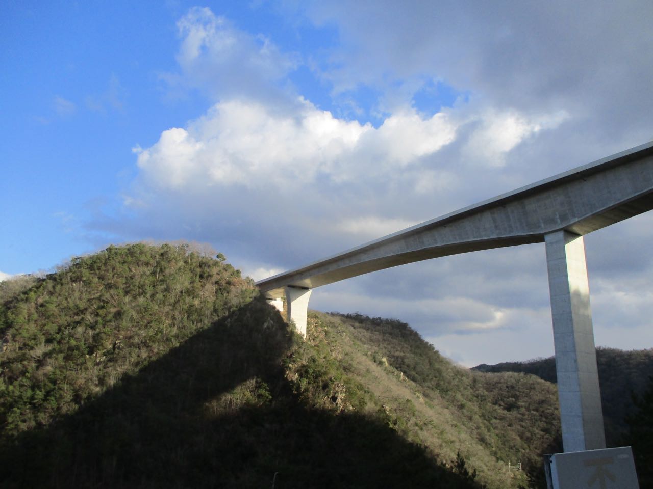ダムの上を新名神高速道路が通るようだ。高速道路って、えらく高いところを通るんだなぁ…。