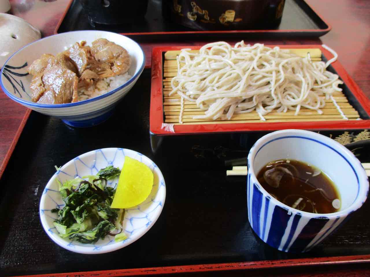 焼肉丼セット。寒いのに、ざるそば付きを頼んでしまった。 ^^; 他の皆さんは、温かいお蕎麦を食べていた。まあ、この季節、普通はそーだよねぇ〜。 ^^;
