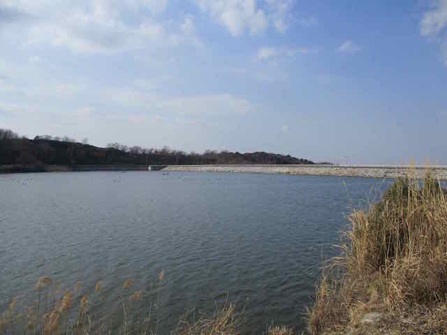 かりんとう饅頭へ向かう途中で、「あそこに つくし湖 がありますよ。 ^^」と、さらに気遣わせてしまう。申し訳ない限りだが、アースダムを目前にしては立ち寄らないわけには行かない。 ^^;