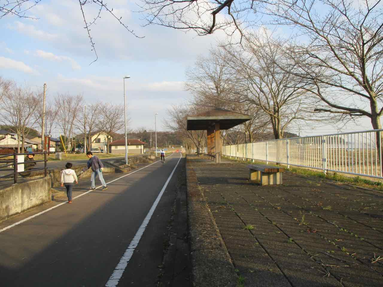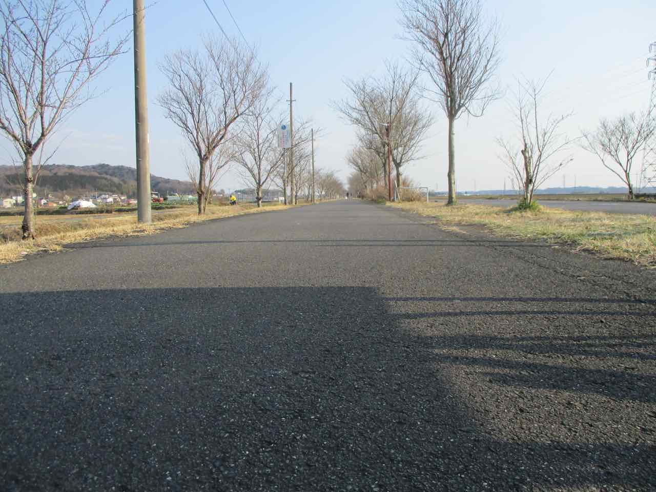 つくばりんりんロードは、ひたすら真っ直ぐなサイクリングロードだった。車は来ないし、人も少ないし、とっても走りやすいのだが、あまり刺激のない道なので、ローラー台に乗っているかのようで、ちょっと退屈…。 (><) 桜並木になっているようで、春に走るのが良さそうだ。