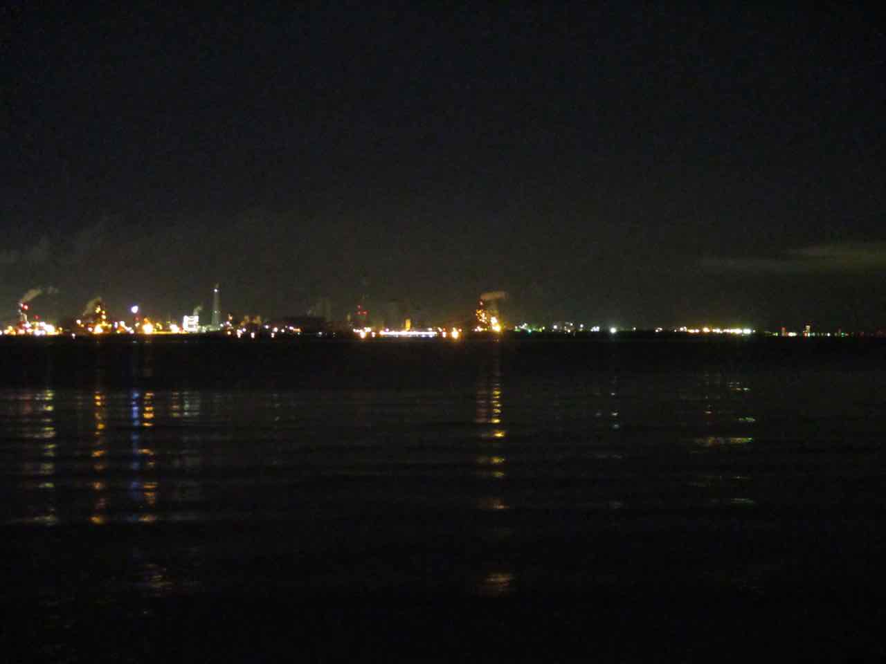 真っ暗な中、コンデジを駆使して、なんとか撮影した江川海岸からの夜景。日頃、ほとんどオートモードなので、いろんなボタンを押しまくって、試行錯誤した結果の一枚。 ^^;