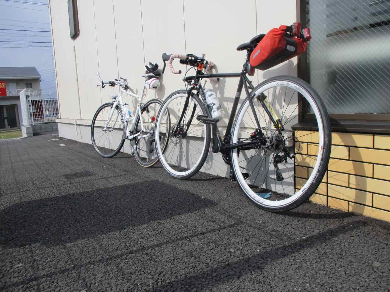 コガさんの新車は SOMA のフレーム。シクロクロス用…なのかな? ディスクブレーキと白いホイールが眩しい。軽く乗らせてもらったけど、クロモリフレームと 32c のタイヤのおかげか、とっても滑らかにヌルヌルっと走る。そして、ガツーンと効く強力なディスクブレーキで、あわやこけそうになった。 ^^;