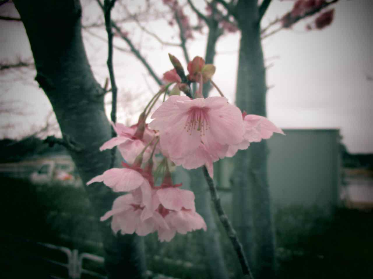 満開は来週ぐらいかな? 少しだけ咲いていた桜をカメラに収めた。