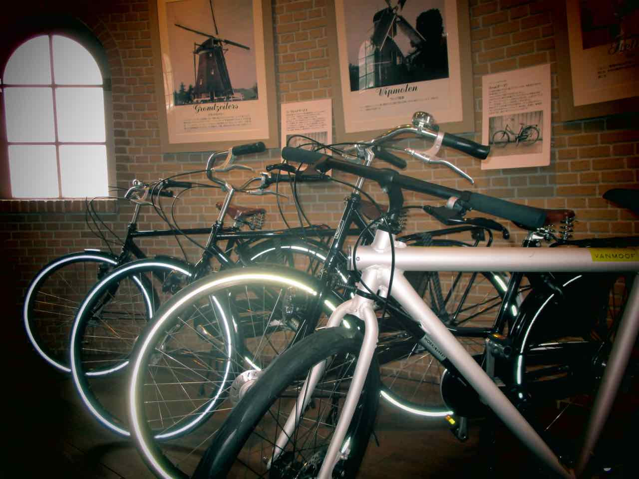 風車の中に入って、二階に上がると、レトロ風な自転車が展示されていた。シンプルさがとても美しい。機能美ってやつかな。