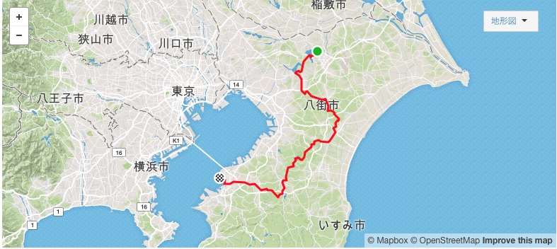 これまで、東京近郊で走ったことがあるのは、神奈川県、埼玉県、栃木県、静岡県、山梨県。なぜか、千葉県が入ってないのだ。めぼしい山がないので、ヒルクラ好きの人たちに誘われることがないし、個人では、自転車で都内を横切るのに抵抗があるので、だいたい西へ向かってしまうから、なかなか千葉県を走る機会が訪れない。今回、房総半島を走るまでは、千葉県バージン (略して 千葉ージン) だったのだ! ^^;