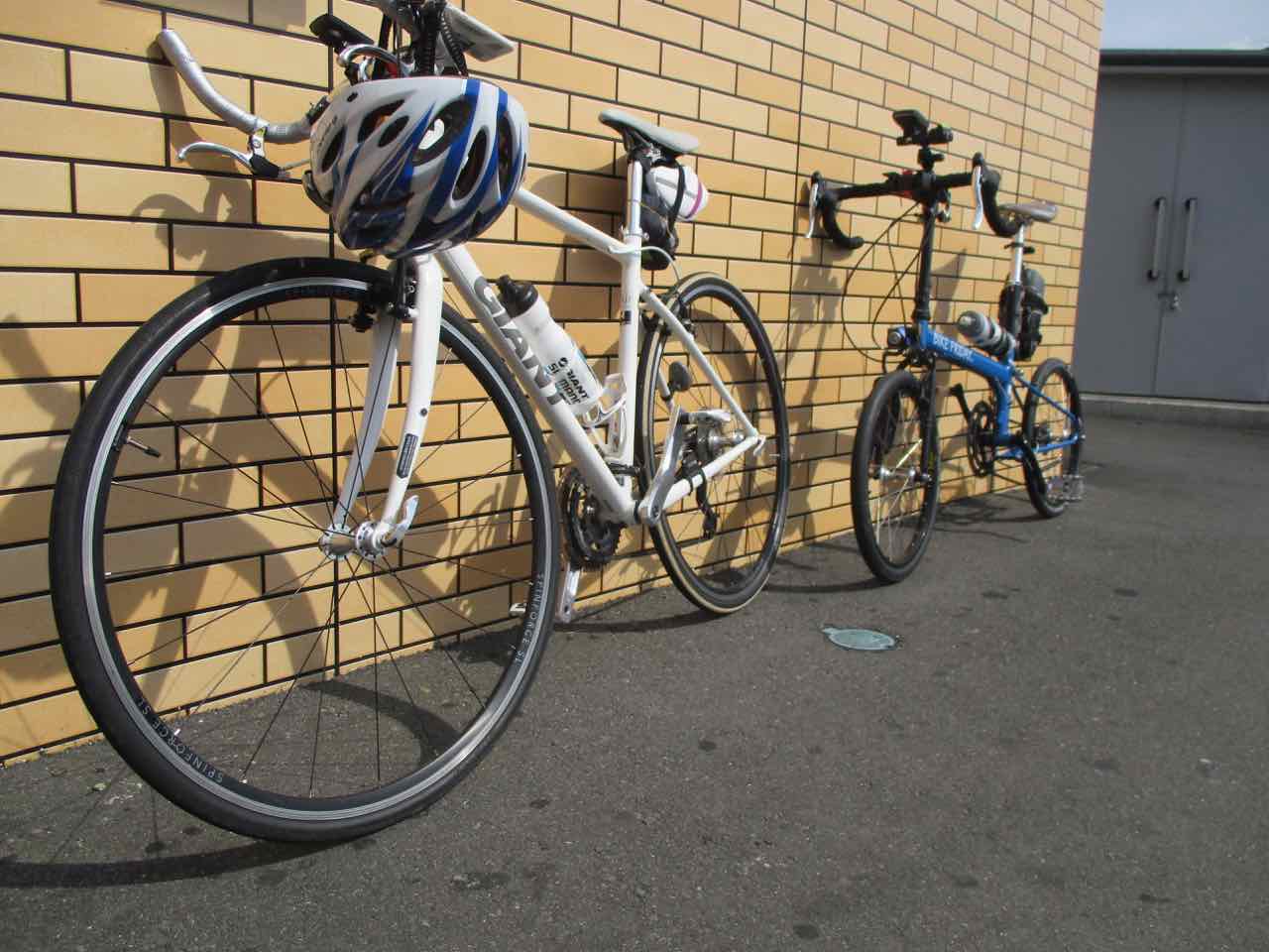 いつもながら、クロスバイクとミニベロで、ヒルクライムではなかなか見れない貴重なコンビだ。 ^^;