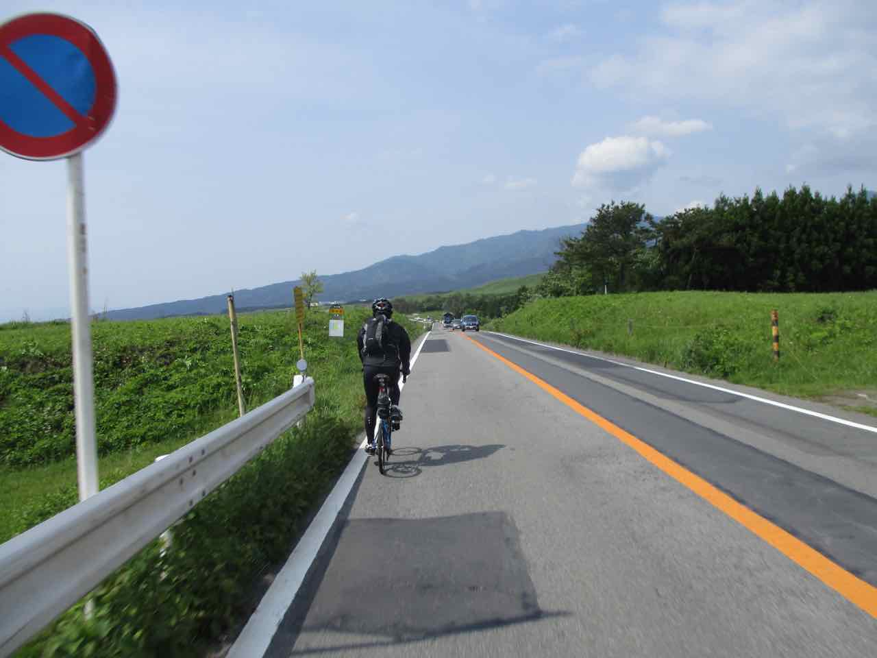 最初はやや登り基調の平坦路。ちょっと写真では分かり難けど、広がる草原の中を走るようなちょっとした絶景ライド。そこそこトラックが走っているので、走りやすいとは言い切れないけど、なかなか気持ちいい感じ。