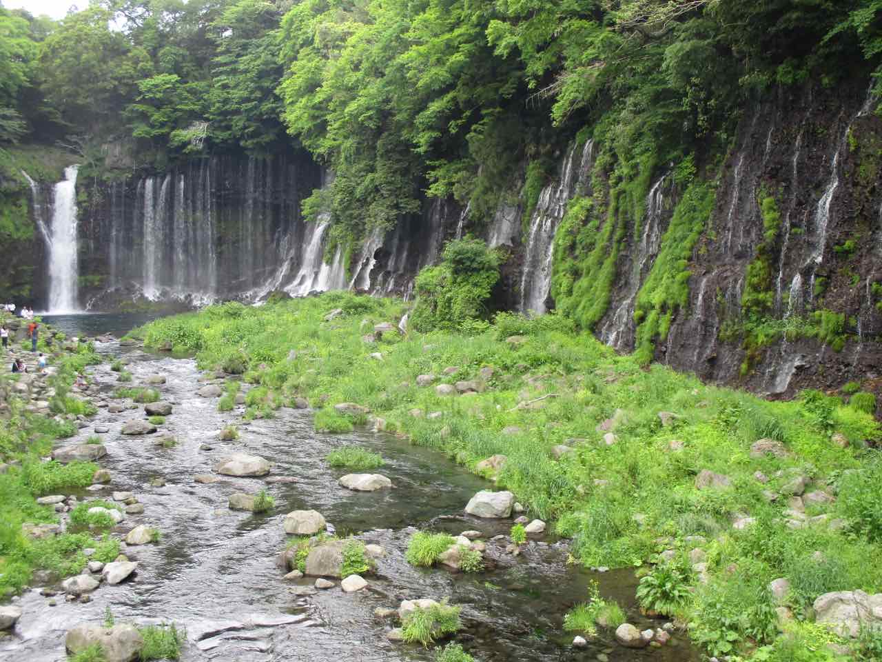 予定外の 白糸の滝 だったが、こんなにたくさんの水流がある滝は初めてで、素晴らしい景観だった。近くまで寄ると、水しぶきを浴びるのだが、これからの季節、かなり爽快感を味わえるだろう。メジャーな観光スポットらしく、人が多くて、土産物屋も繁盛してそうだった。