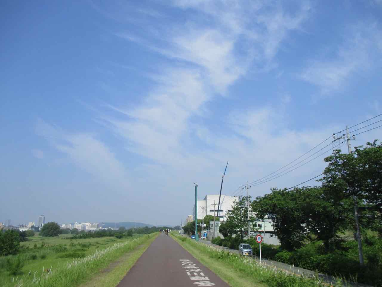 久しぶりの多摩川サイクリングロード。雲はあるけど、青い空が気持ちい。 ^^