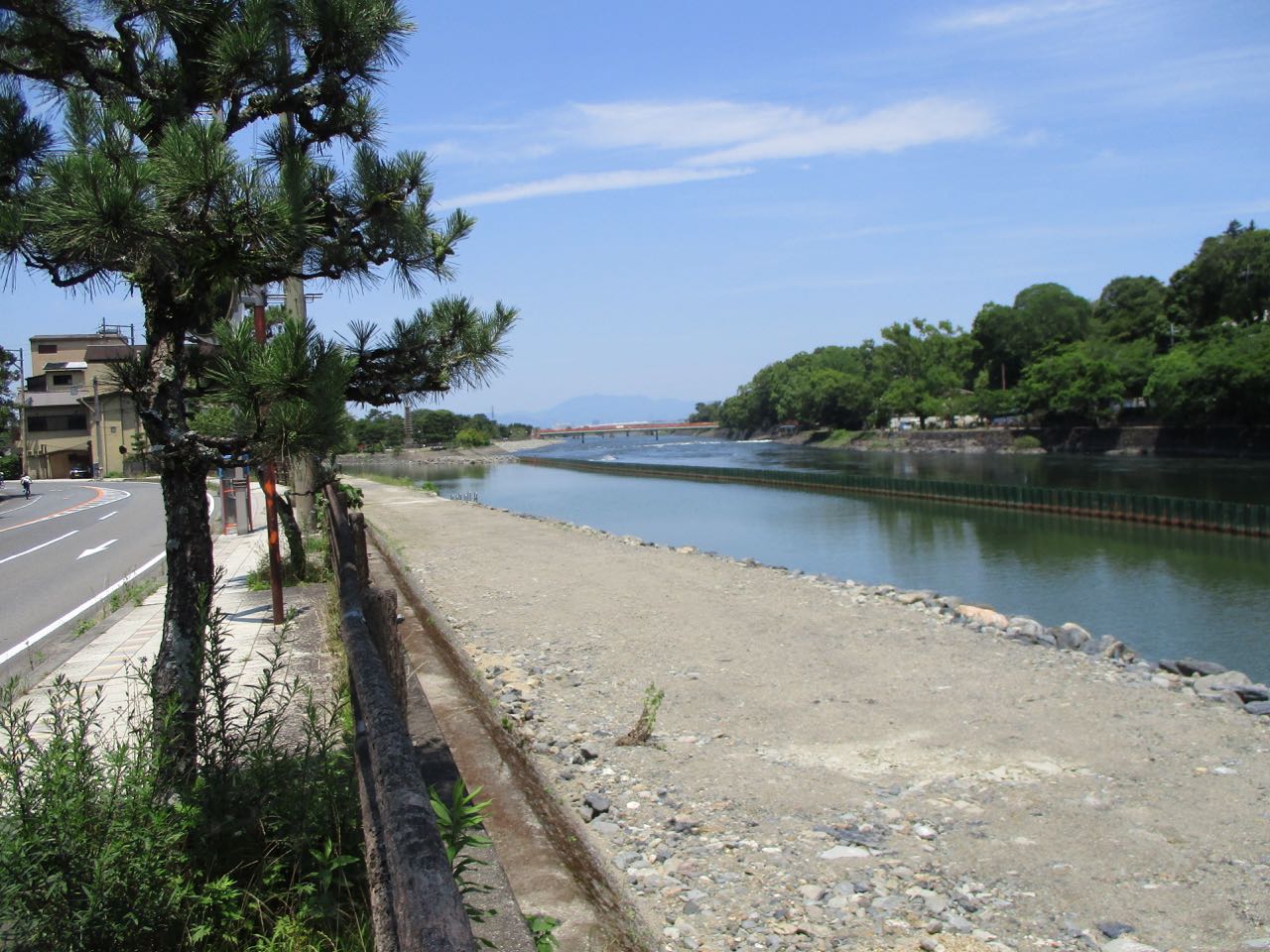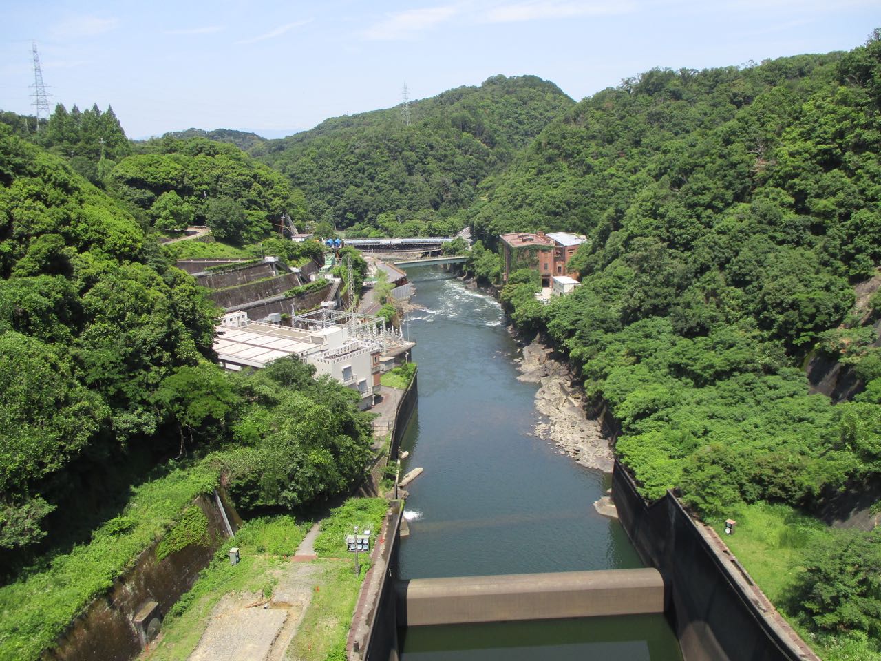 天端から見た下流側は宇治川で、その先は淀川につながっている。