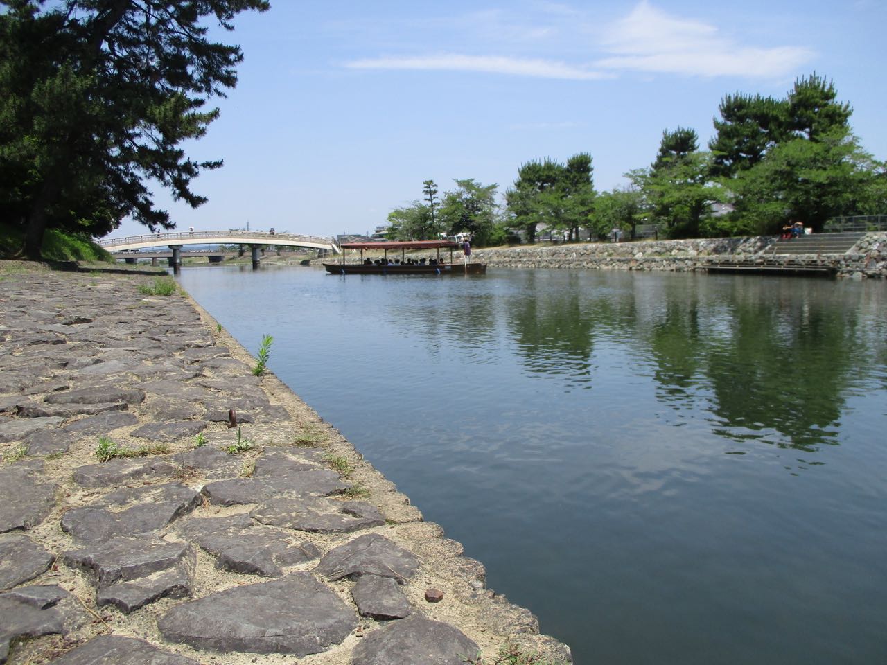 諦めて宇治川を見に行くと、遊覧船が通り過ぎていった。ちょうどお昼時だったせいか、船上でお弁当を食べてた。優雅だ。 ^^