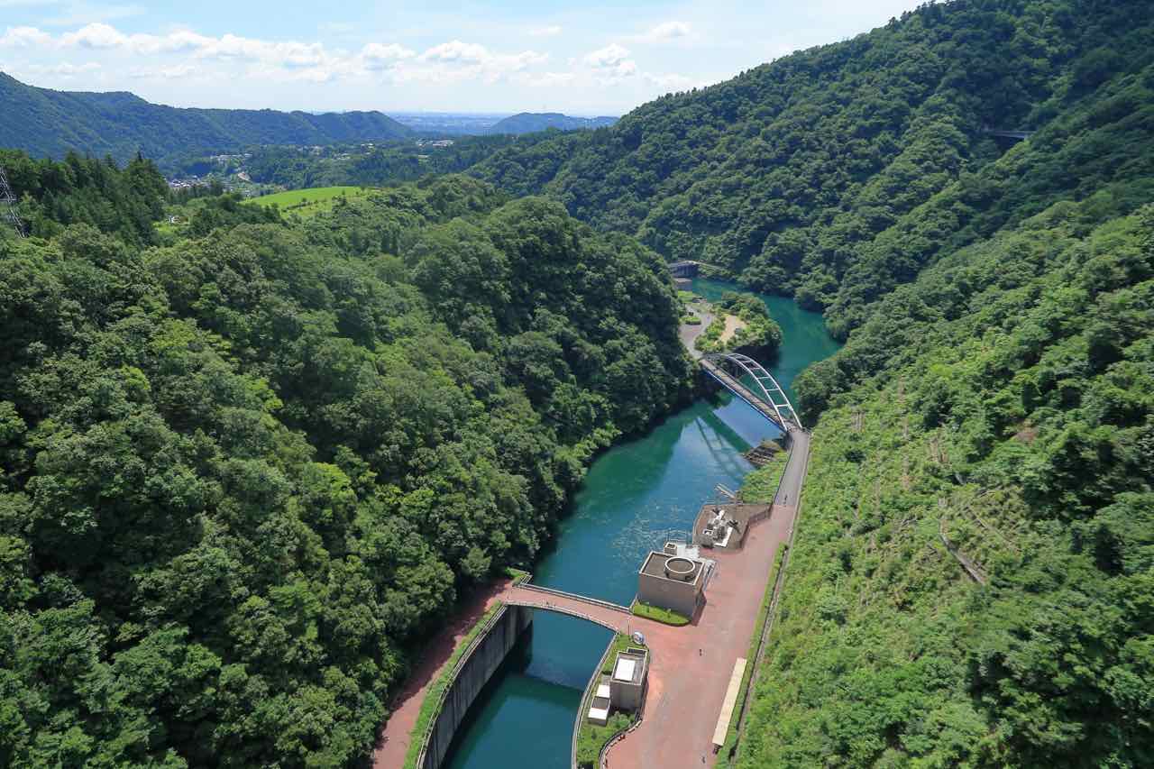 堤体の中央から見た宮ヶ瀬湖。息をのむ美しさだ。