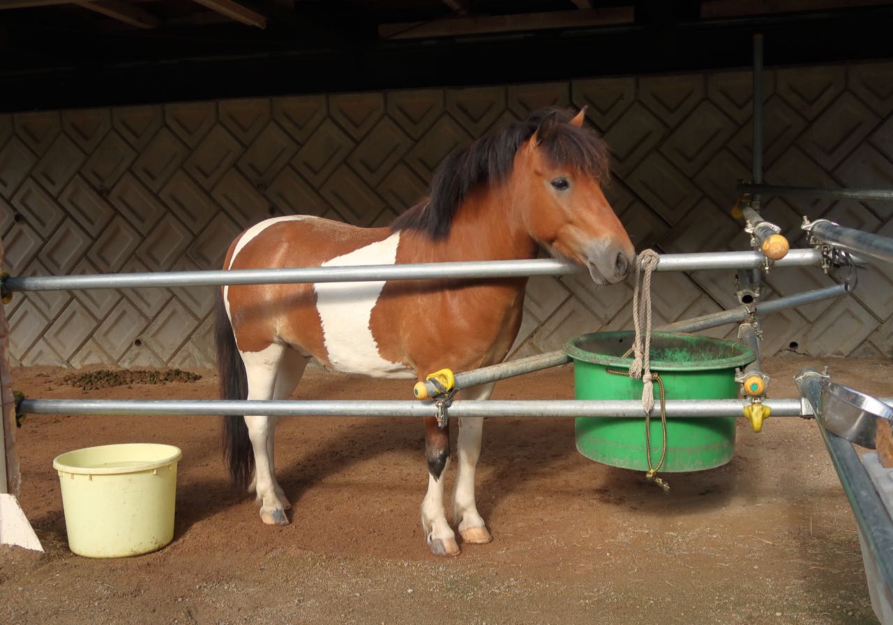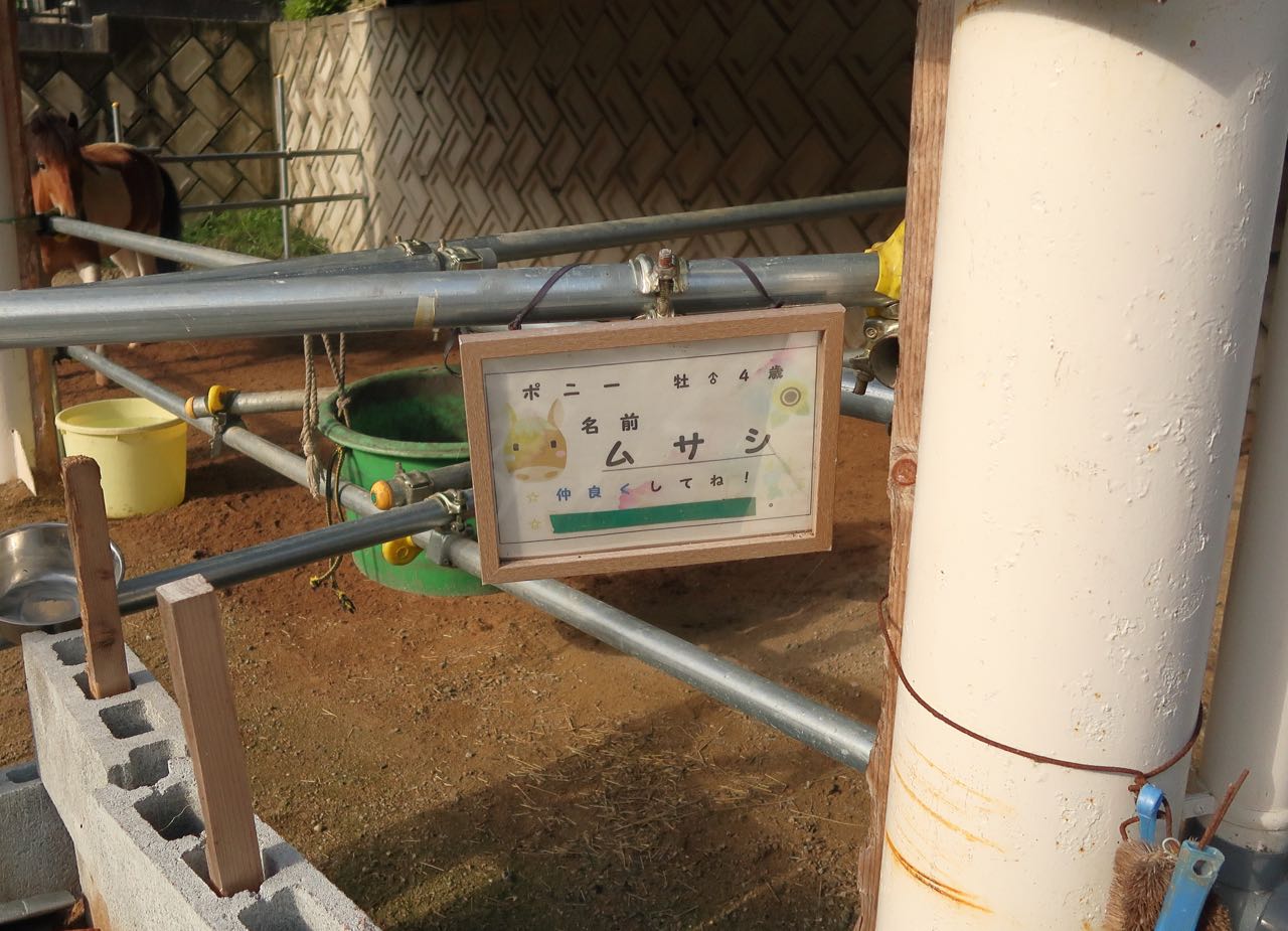 杉生の交差点を左折し、「そういえば、カメラが新しくなったことだし、ポニーを撮りたいなぁ〜」と思いながら走っていると、いつものところにポニーがいた。 ^^ 何度か写真を撮ってるけど、名前が ムサシ だったことを初めて知った。 ^^;