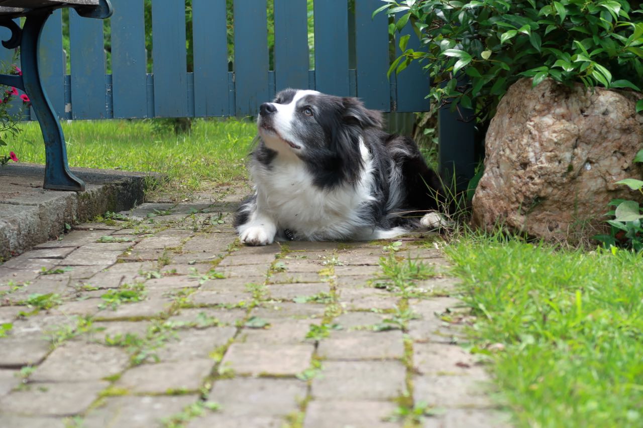 庭の雰囲気はこんな感じ。犬はお店で飼っているのではなく、お客さんの連れだそうな。