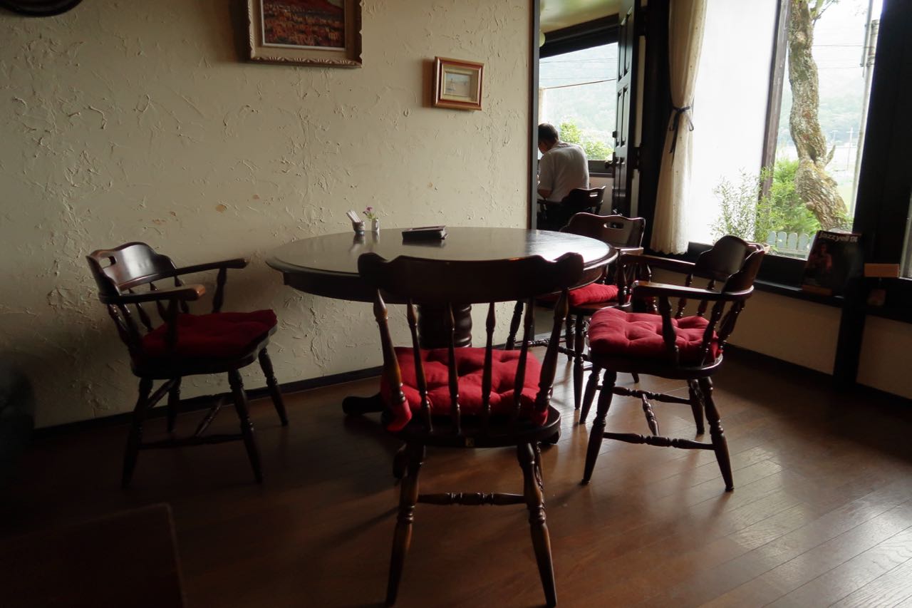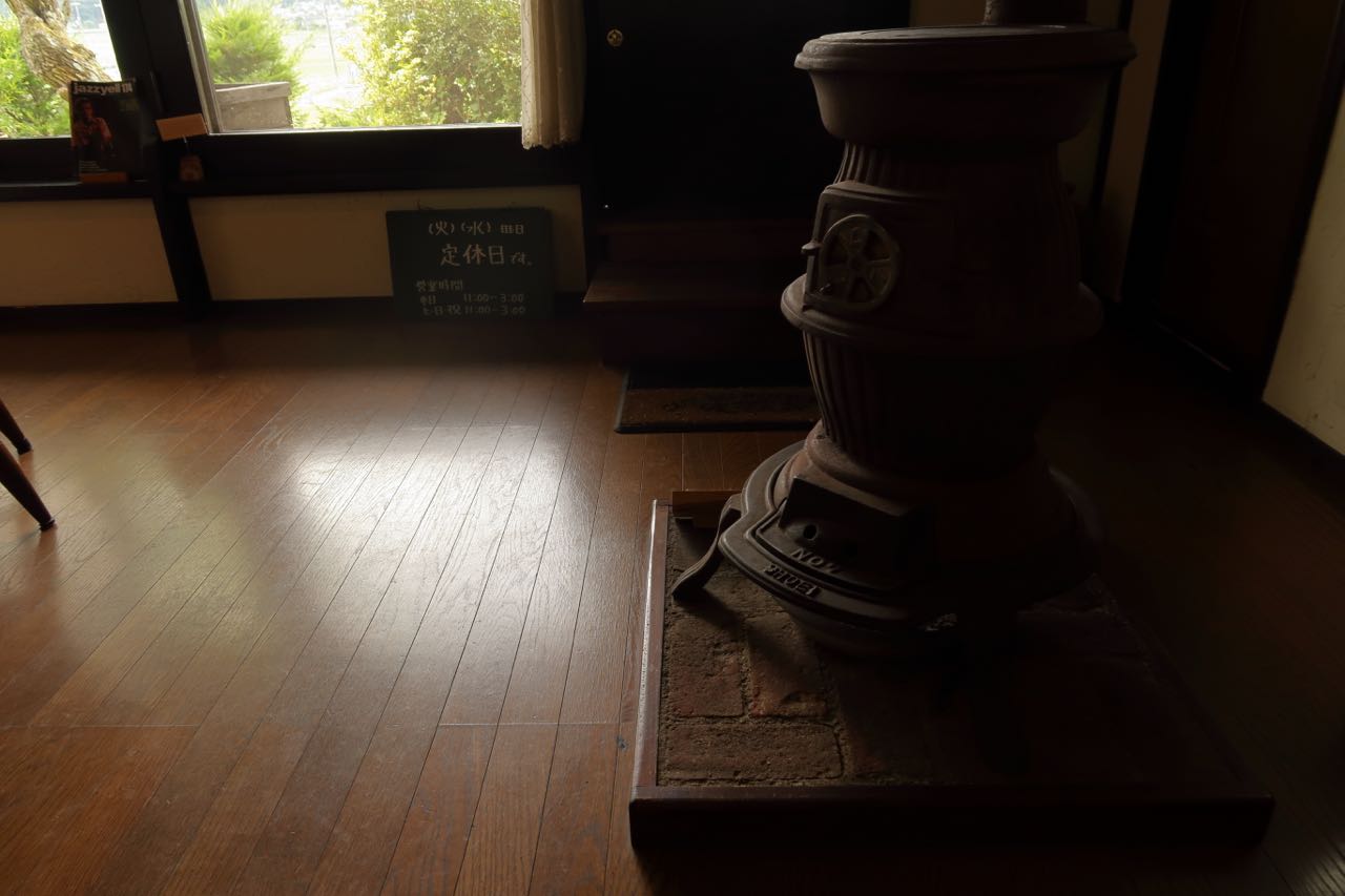自然光を活かした中の雰囲気はレトロ調。夏場なので、ストーブは消えている。 ^^;