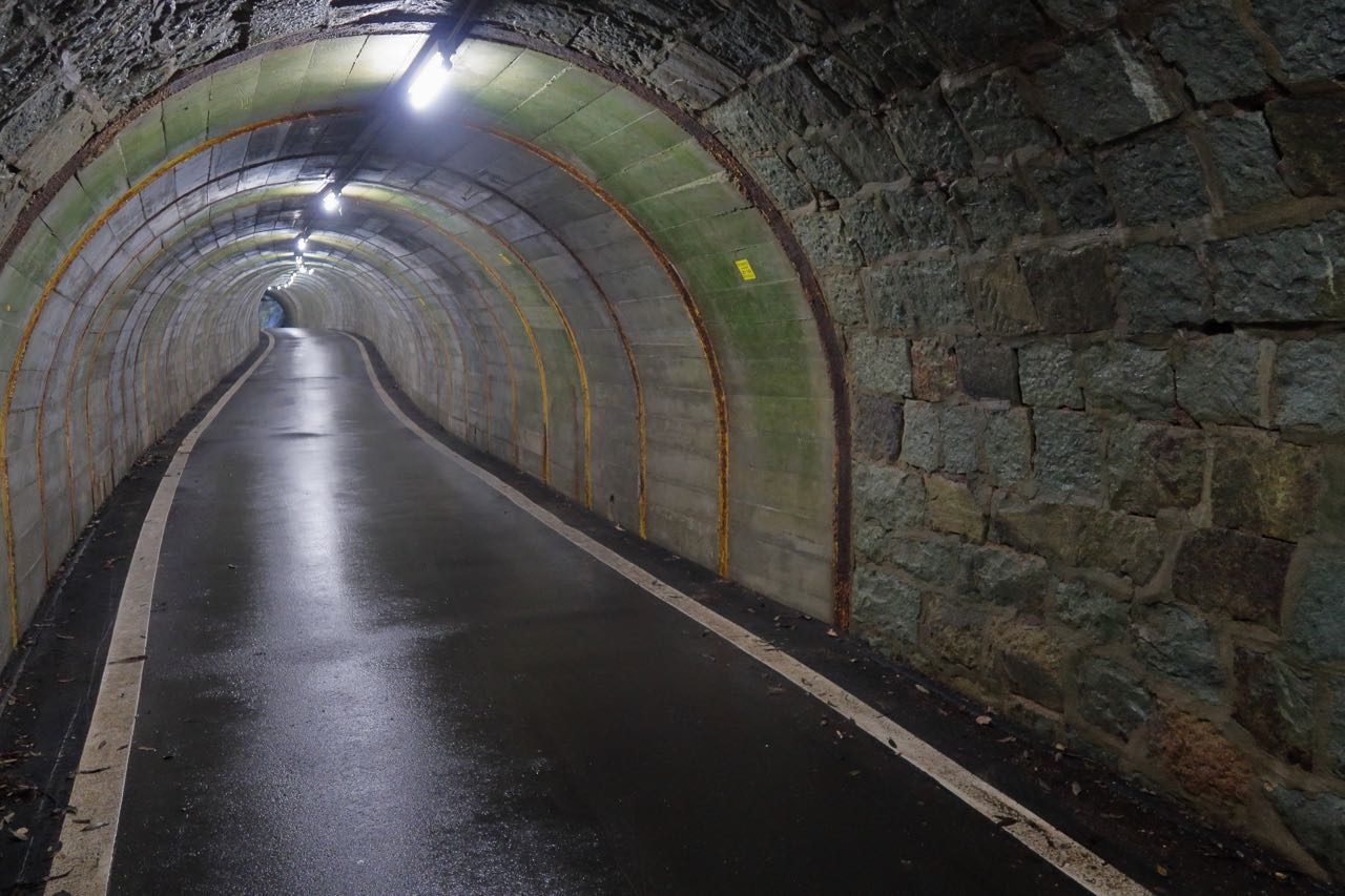 くろまんぷ は、現役の石製トンネルの中で、日本最古のものらしい。今回のメインは、ここへのヒルクライムムービーを撮影すること。以前に車で見学したので、斜度が厳しくなく、距離も短いことは知っていたので、動画を作るにはちょうどいいかな、と。