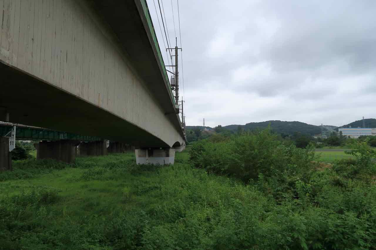 南武線の陸橋。まだ、出発してから 20Km 弱ほどなんだけど、足が攣りそうになったので、ちょっとミネラル補給のついでパシャり。 ^^;