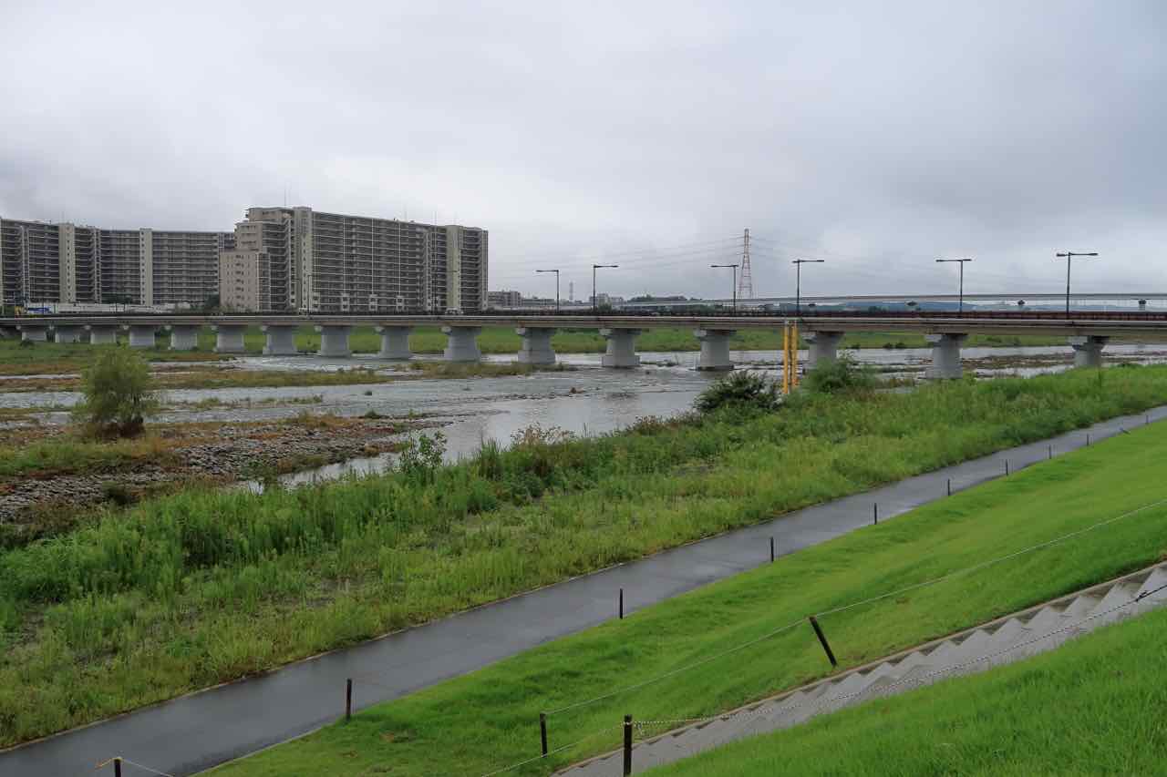 しばらく走って、前方に見える橋は甲州街道だ。途中から霧雨が降っていて、この辺りは路面も濡れている。この先、終点までだいたい霧雨が続く。