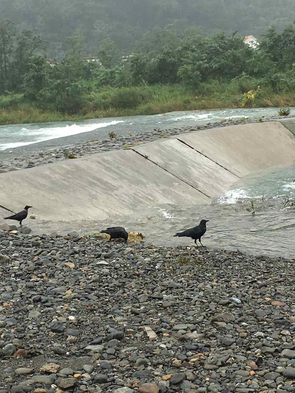 水の流れが緩やかになるところで、カラスが何かを啄ばんでいた。カラスも魚を捕るんだねぇ〜。