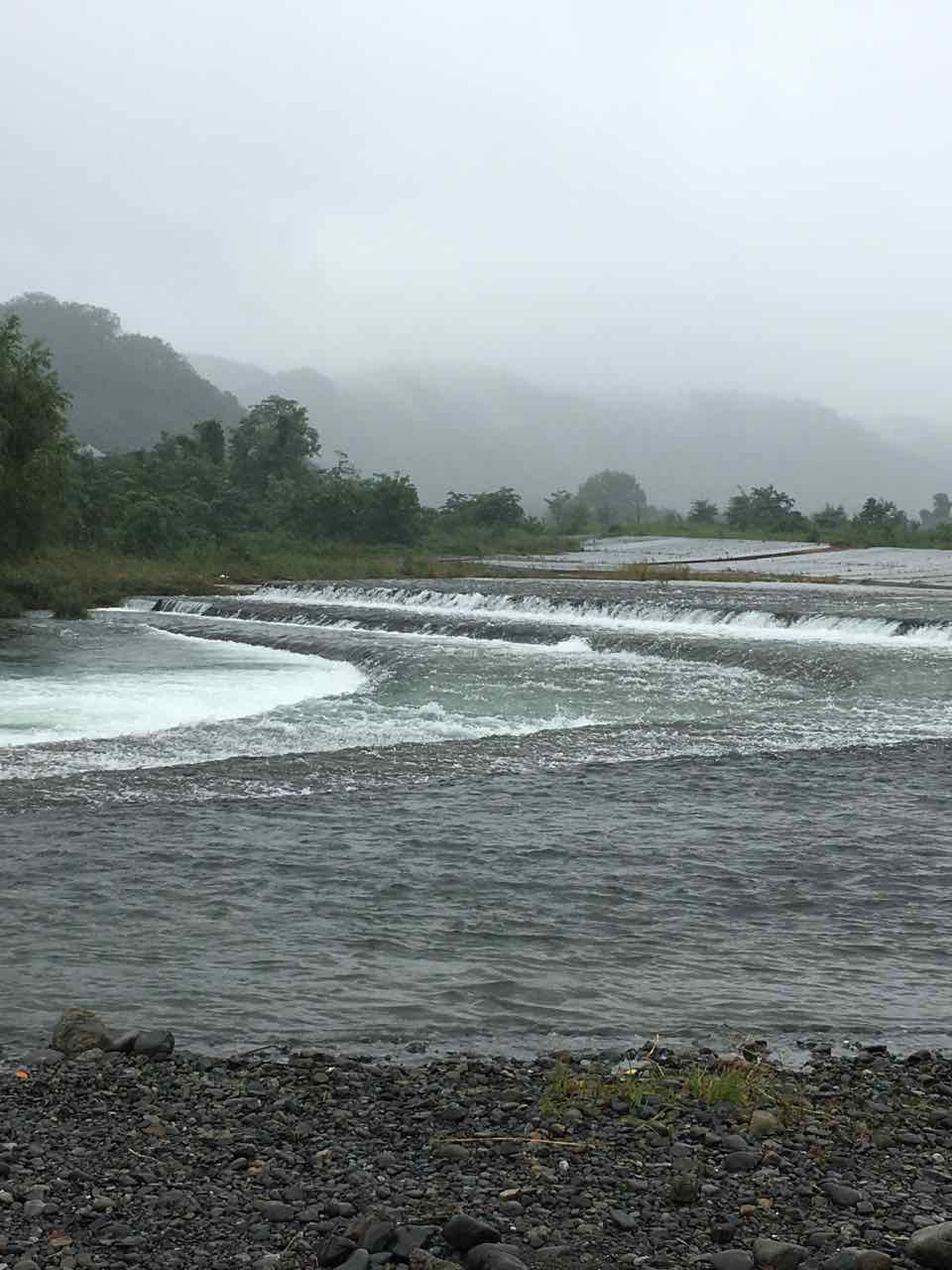 フォトジェニックな段々の堰 (羽村堰だそうな) を発見したので、背中のカメラを手に持って撮影しようとしところ、自転車がはねた泥がかかったようで、正常に動かない。「買って間もない CANON G7X MARK II が〜 (TT)」