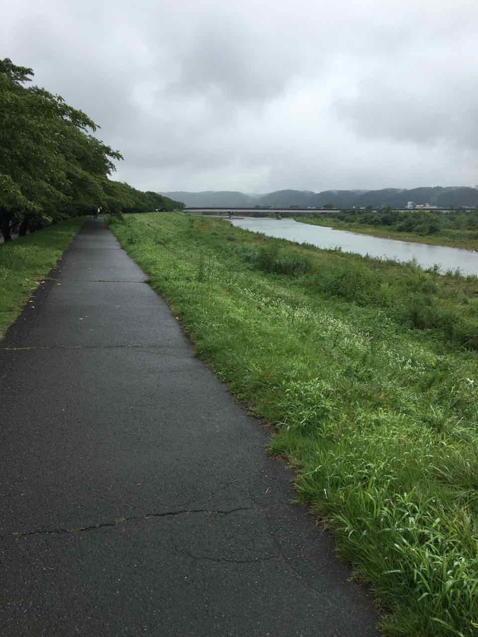 霧雨は止んだのだけど、路面はウェット。背中がドロドロになるけど、しょーがない。いつもより人も自転車も少なくて走りやすいのはいいんだけどね。 ^^;