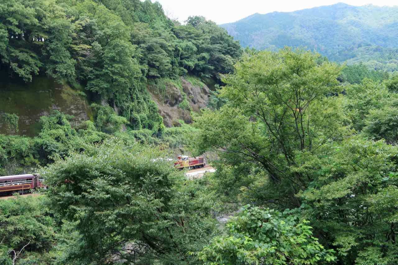 渓谷を走る風情のある電車旅。まるでテーマパークに来たようだ。いや、 世界の車窓から の方が趣があるかな? ^^;
