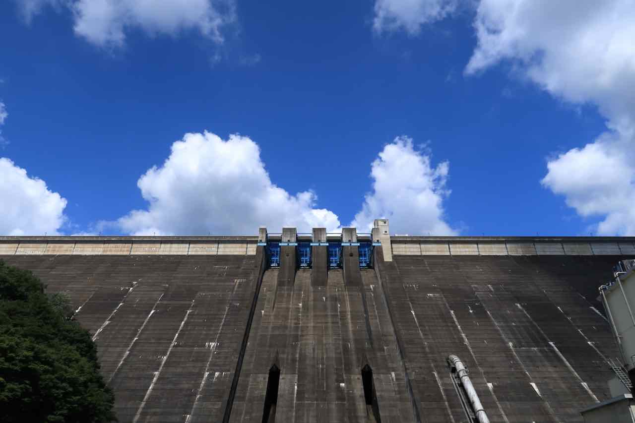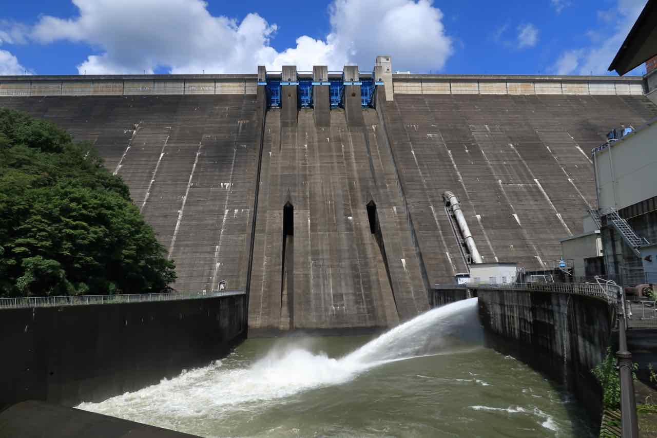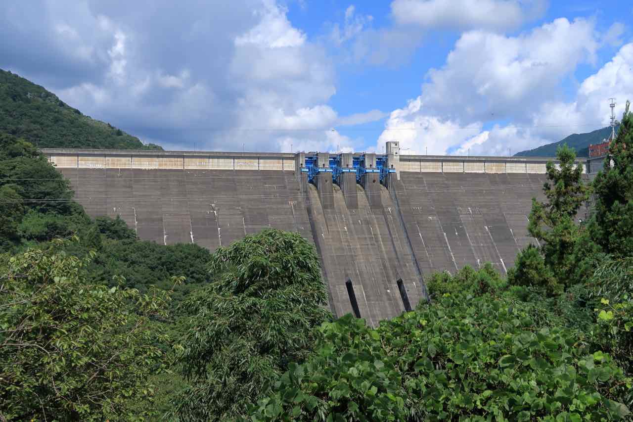 「うぉ! でかい!!」見えてきた草木ダムは、高さ 140m の重力式コンクリートダムなので、118m のシン・ゴジラより巨大だ。 ^^;