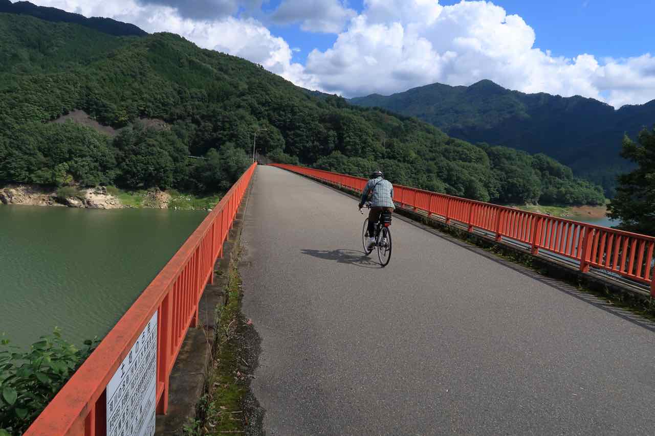 国道側よりアップダウンの激しい道は、ダムまで下り基調のはずなのに、何度も上り坂が現れる。「し、しんどい… ^^;」と思って後ろを見ると、コガさんがいない。上りでコガさんが千切れるなんてありえないのだが…。