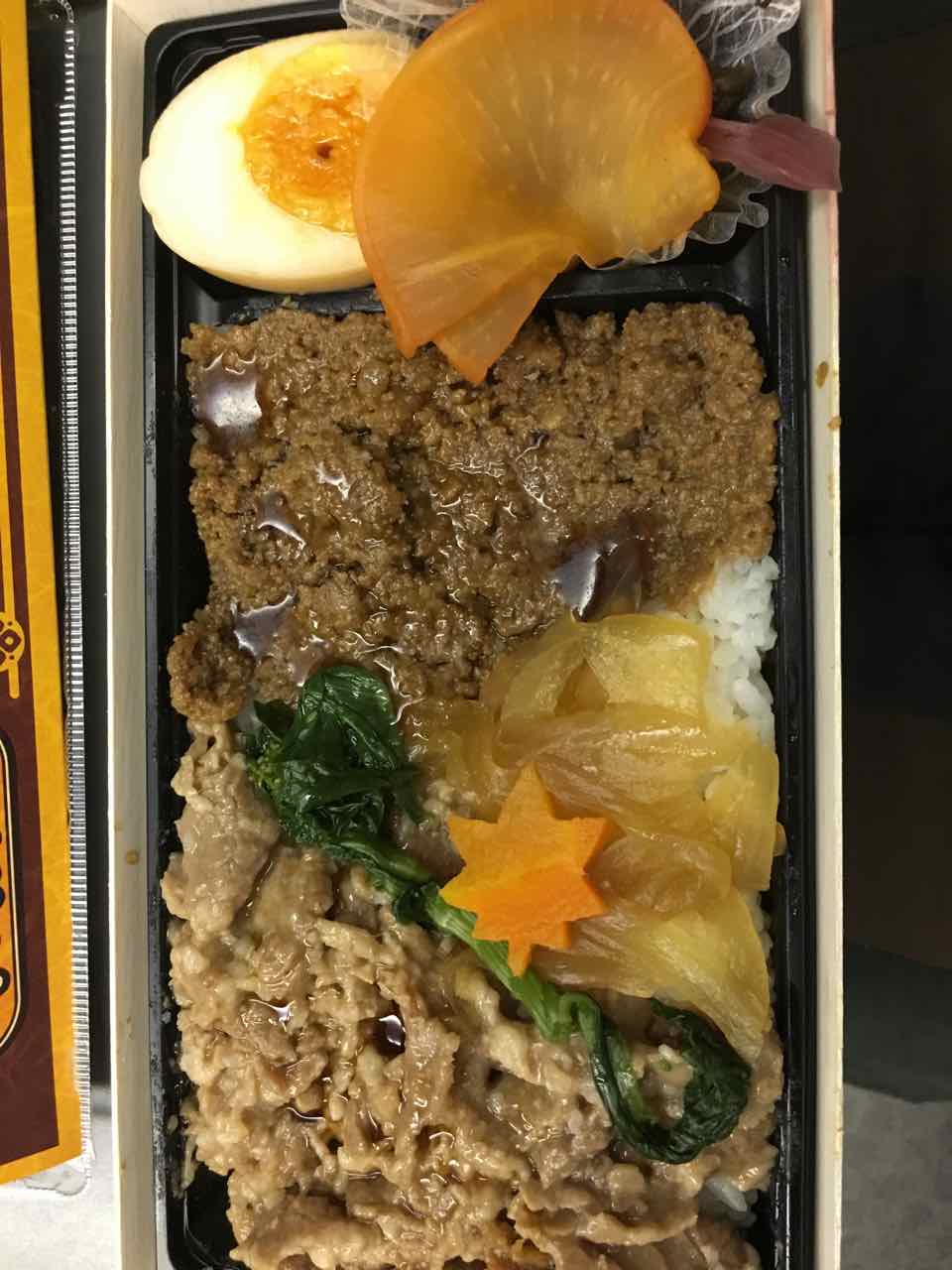 空いてたホームの売店で類似品を探し、見つけた牛肉弁当。