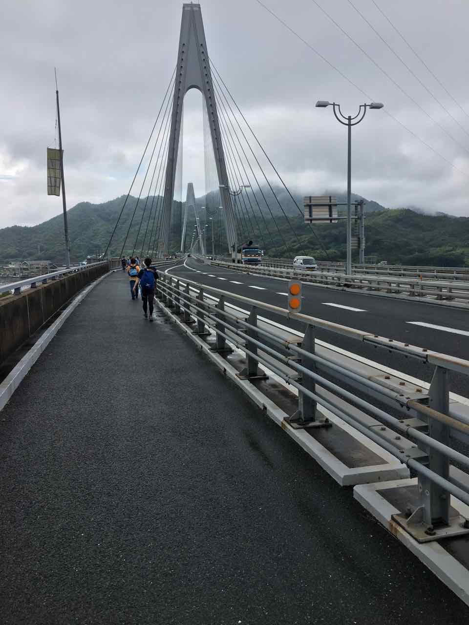 生口大橋を渡って生口島へ向かう。何かのイベントが行わているようで、ゼッケンをつけて歩く人たちがたくさんいた。一日で 40Km 歩くそうな。すごい!