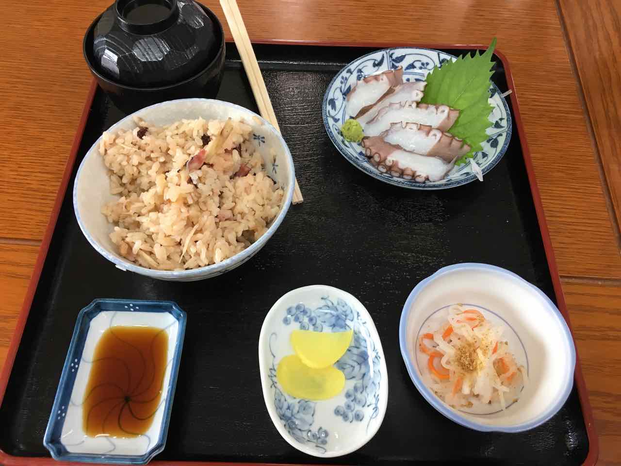 到着するや否や、風呂に入って、伯方の塩味のする汗を流して、晩御飯へ。