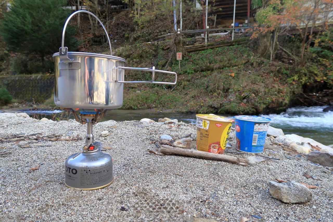 初めて使うアウトドアバーナーにドキドキしながらお湯を沸かす。