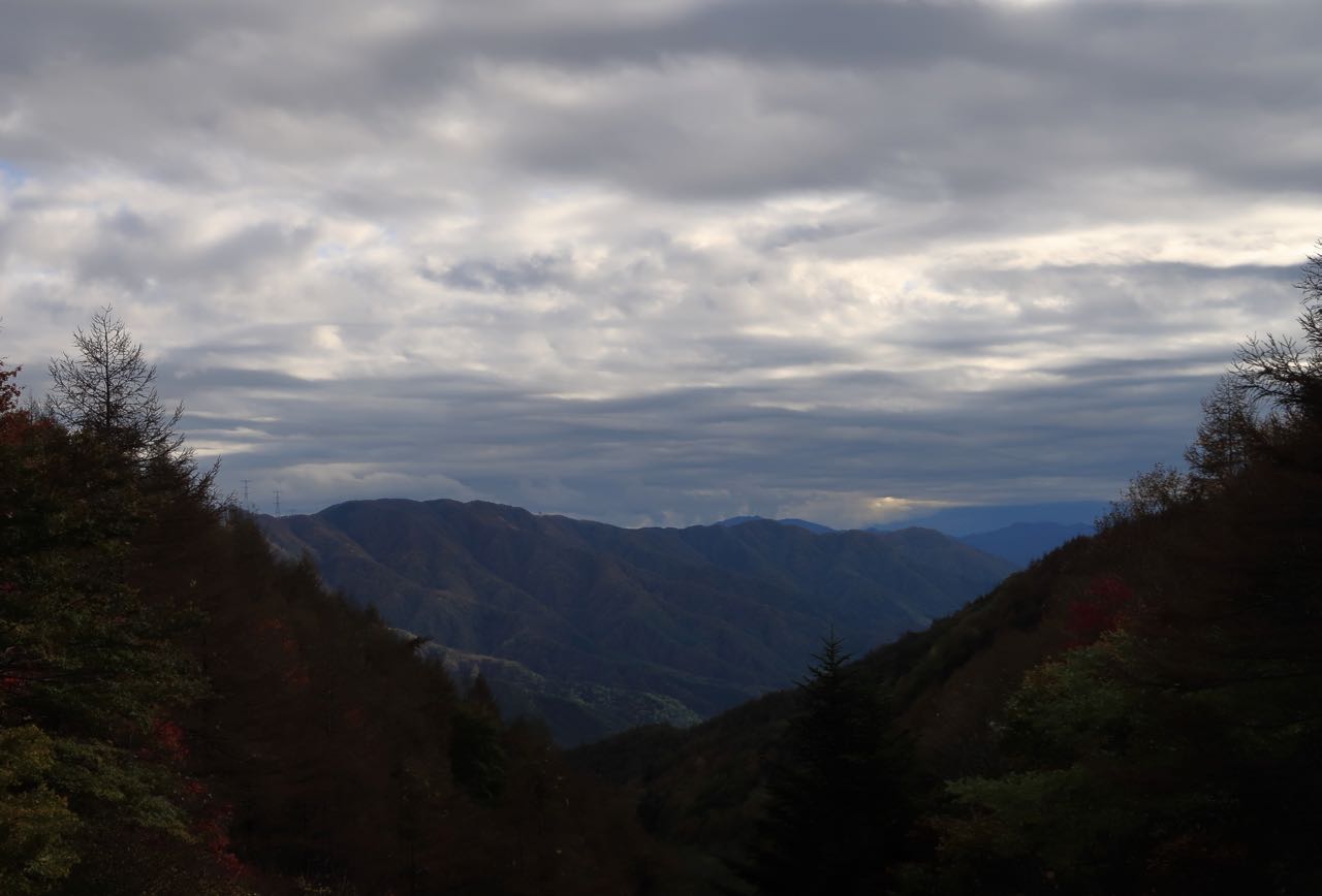 素晴らしい眺望。柳沢峠からは富士山が見えるらしいのだが、残念ながら空は厚い雲に覆われていた。くぅ〜。 (><)