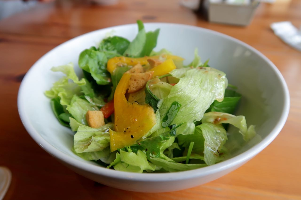 まずは 自家野菜たっぷりサラダ 。自家栽培の野菜と、地元産の野菜しか使っていないそうな。あっさりの目のドレッシングとよく合っていて、いくらでも食べられる。 ^^
