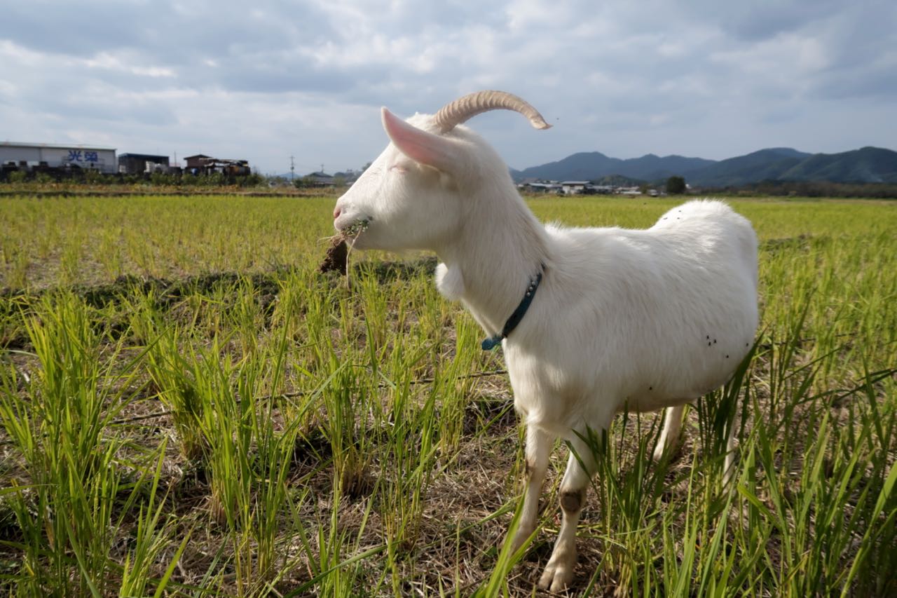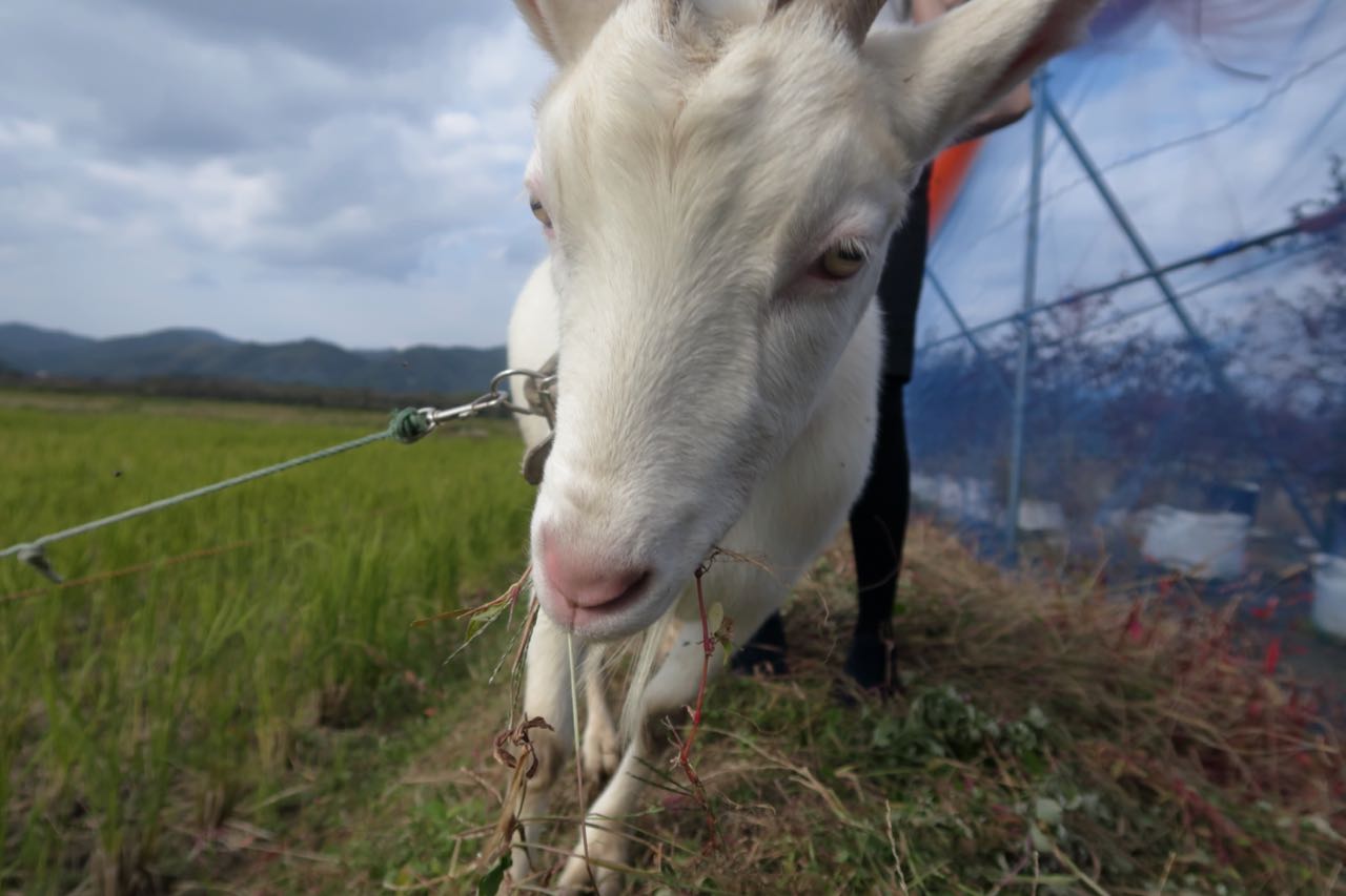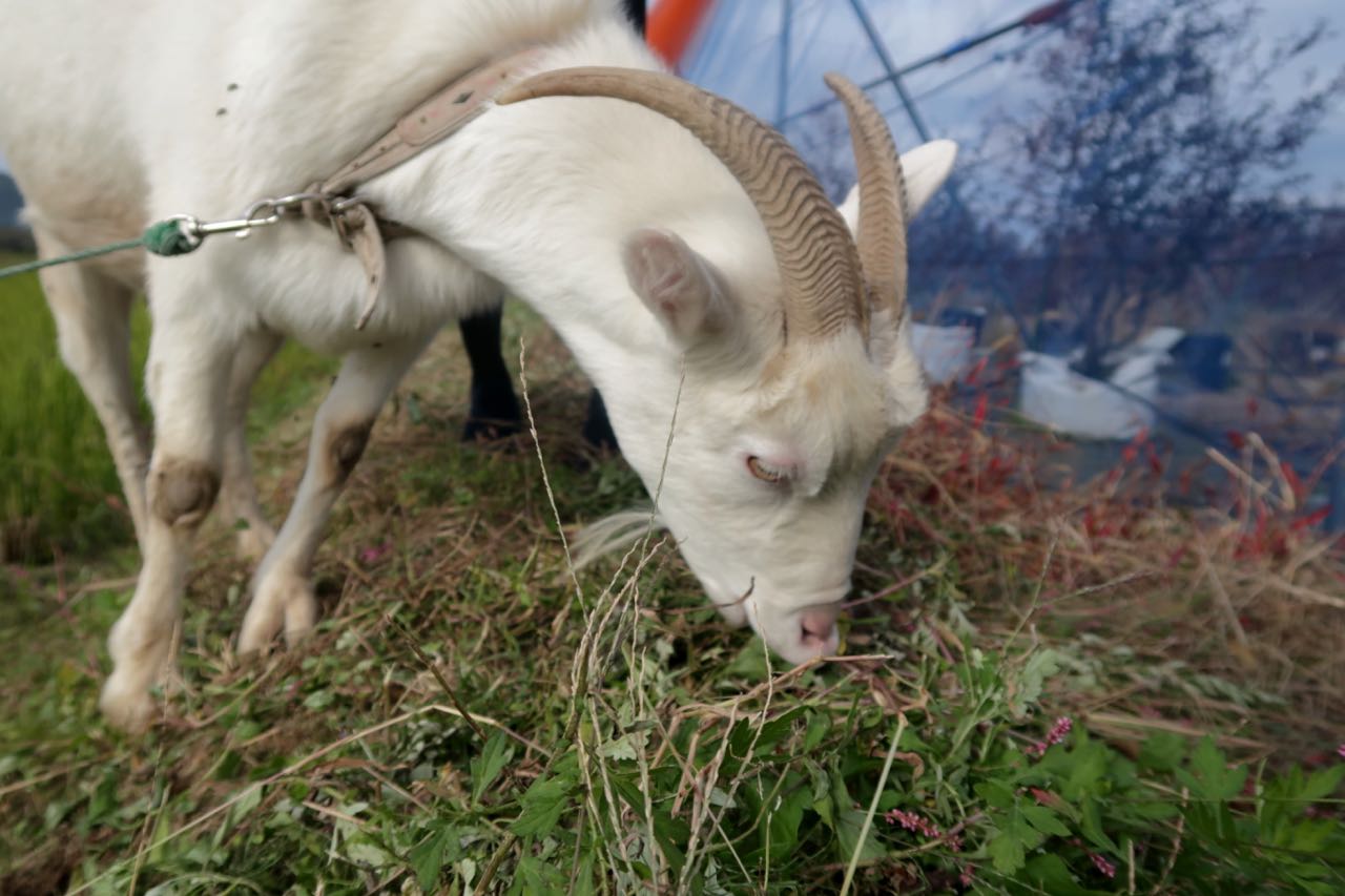 お店の農場ではヤギがお仕事 (雑草をモグモグ) していた。「邪魔しないからねぇ〜。」と言いながら撮影させてもらった。