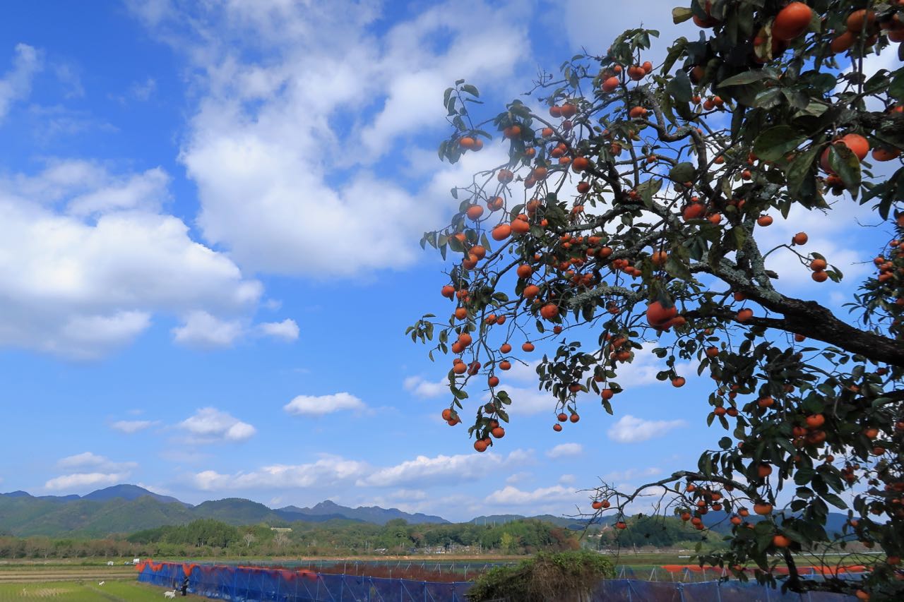 柿の木の向こうの空は清々しく晴れた青空が広がっている。