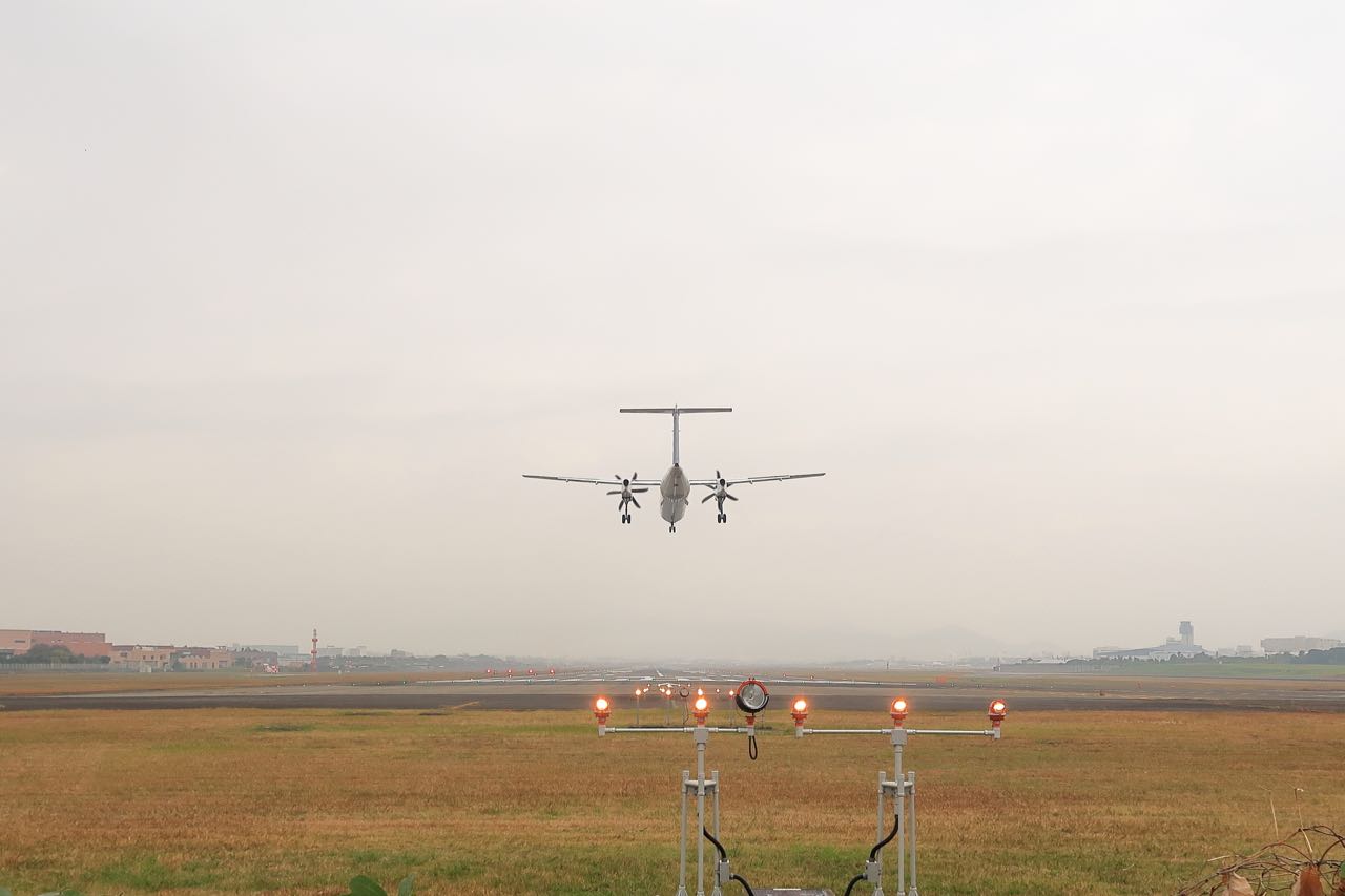 滑走路の少し横からは、迫力ある着陸風景が楽しめる。