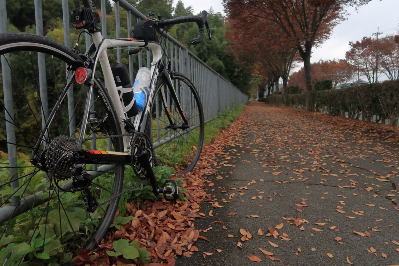 温暖な週末で、最高気温は 18度の予報だったので、長袖のインナーとジャージで十分。寒くなって足のお手入れは停止してるので、レーパンはロングにした。 ^^; グローブは薄手のフルフィンガータイプだった。ただ、朝は少し寒いので、出発時はウィンドブレーカーを羽織っていた。